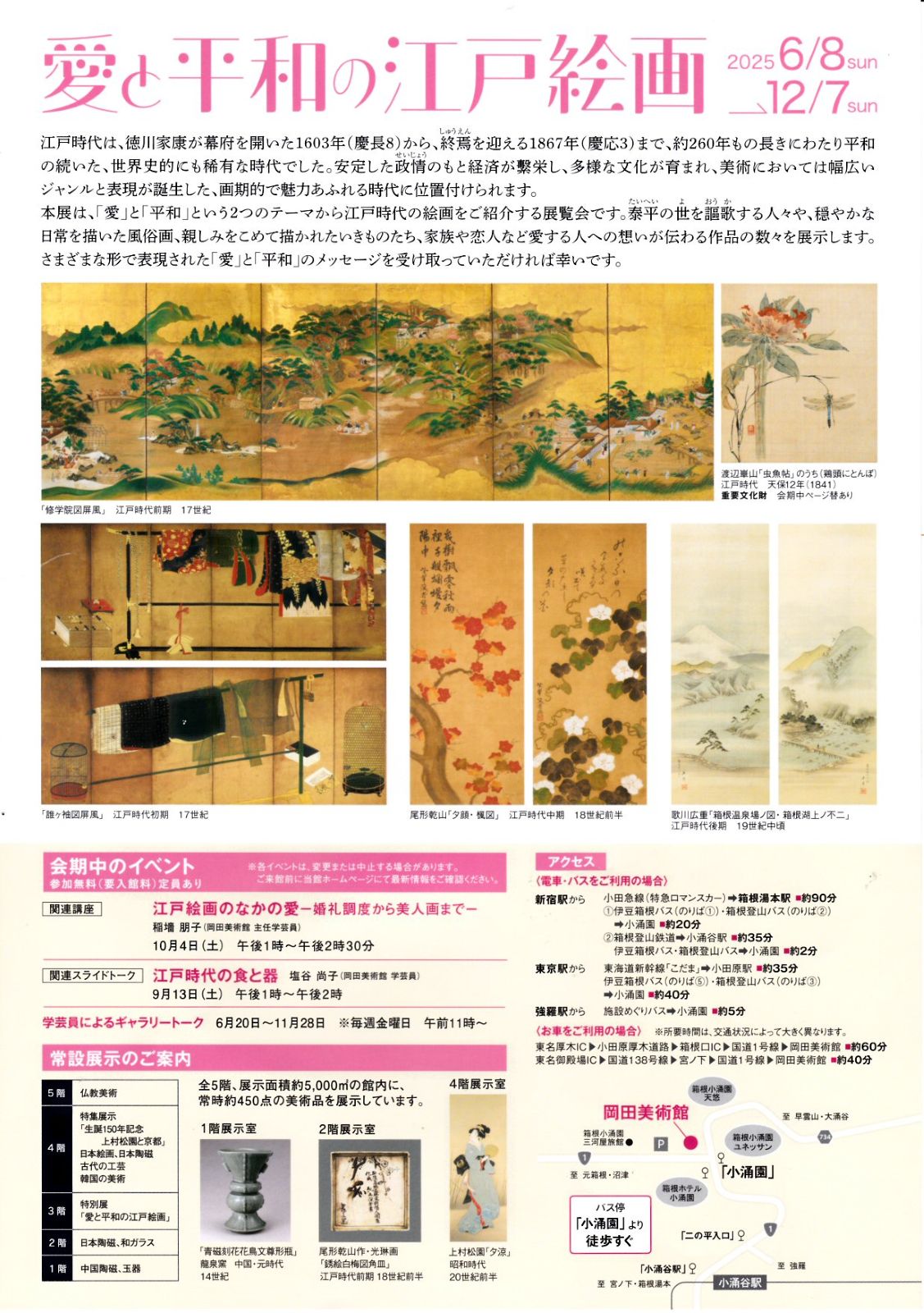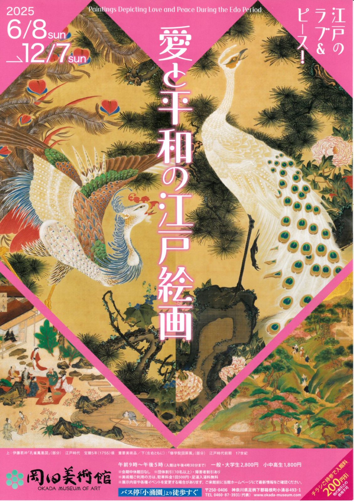 岡田美術館の『愛と平和の江戸絵画』展を見にいきました。たくさんの吉祥を目で愛でました。誰が描いたか判然としない屏風画などにも名画がたくさんあります。日本は素晴らしいのう。酒井抱一の『月に秋草屏風図』、伊藤若冲の『孔雀鳳凰図』、森狙仙の『鹿に猿屏風図』とか、みんな素晴らしい。日本に生まれたことが本当によかった。徳川家の二百六十年の平和の治世に万歳です。