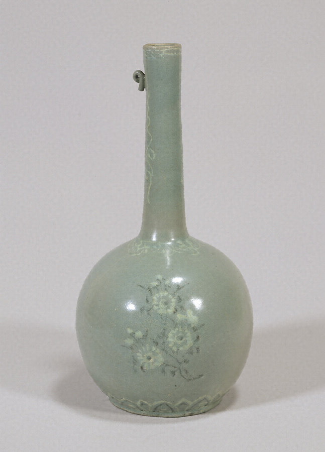 常設展では本当ににたくさんの中国、韓国、北朝鮮、日本の美しい磁器、白磁や青磁や白青磁を一度機に初めて見ました。ぼくは朝鮮半島の高麗時代の菊の模様をうすくあしらった青磁の水さしもしくは花器の『青磁象嵌菊花文長頸瓶』にいたく惹かれてしまいます。なるほど、柳宗悦が朝鮮の陶磁器に惚れこんだ理由がわかるというものです。