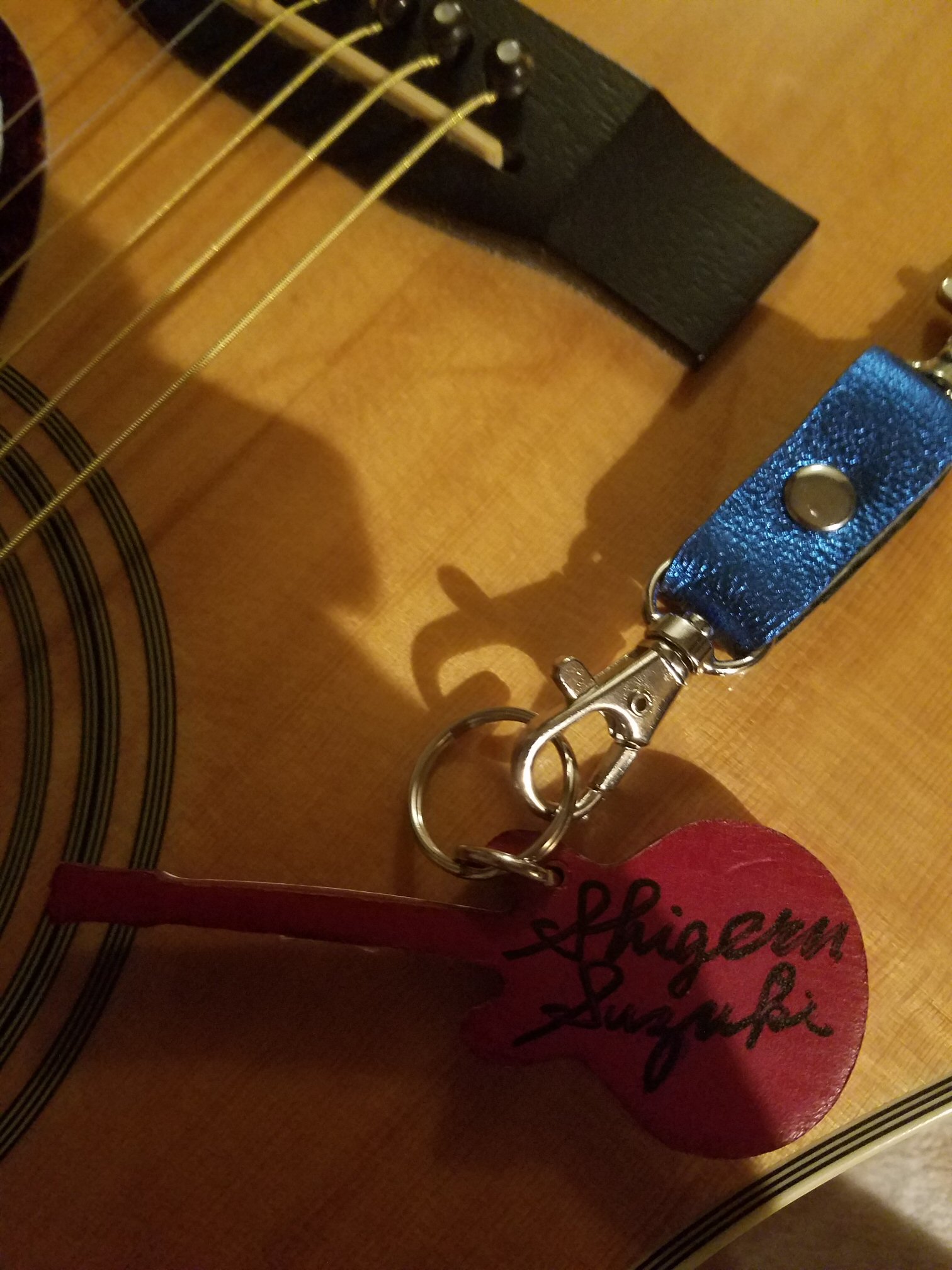 これは柳田ヒロさん、鈴木茂さんと相模大野アコパでセッションした時の記念品なのです。このキーホルダーは鈴木茂さんの手作りとのこと。大事にしていつでも手元に見に付けます。