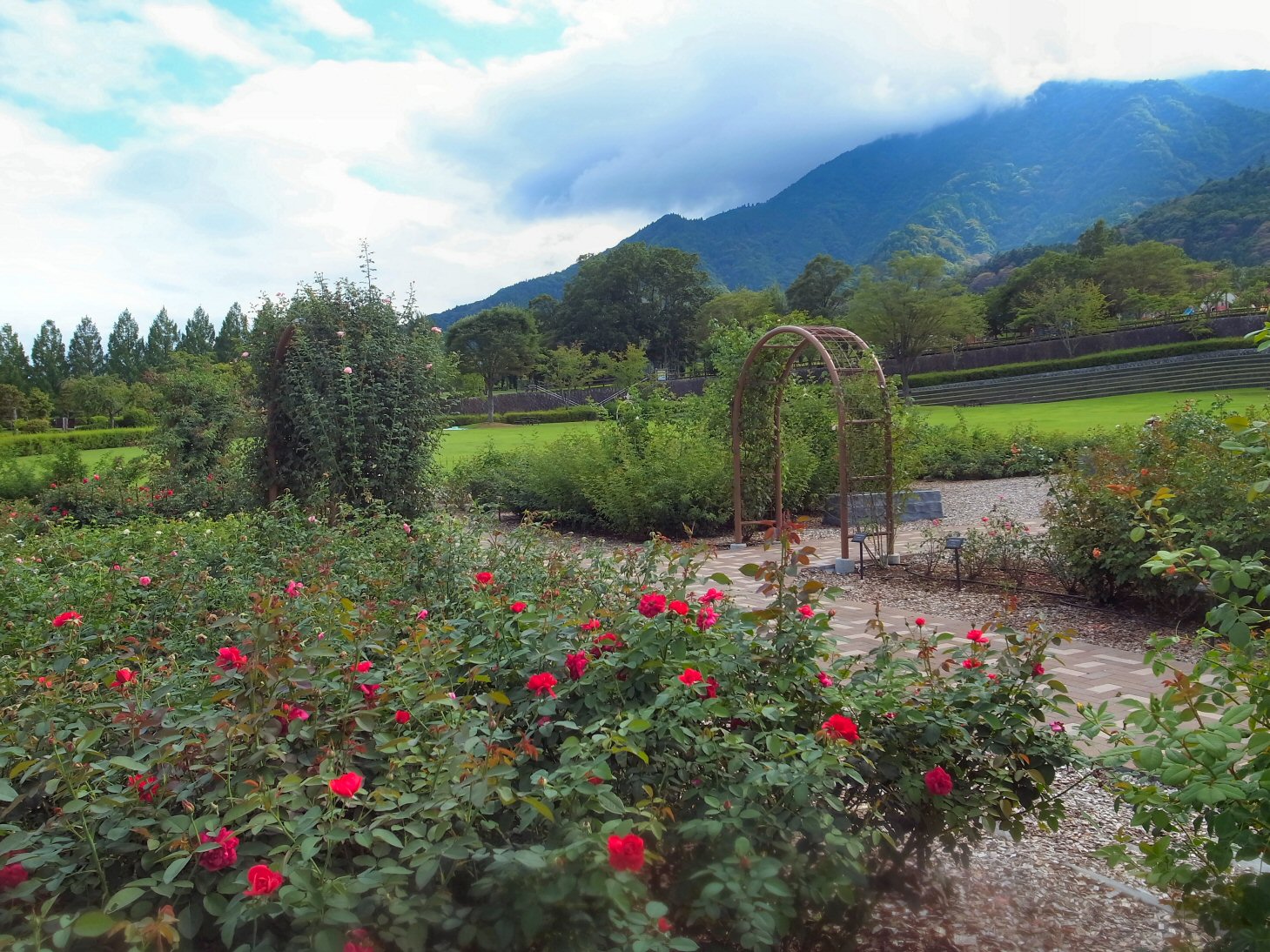 宿入りの時間まで少し時間があったので富士川・切り絵の森美術館に行ってきました。数年前、来た時よりもたくさんの切り絵を展示してある。やっぱ、酒井敦美さんの切り絵はいいなぁ。外へ出ると子どもたちがトランポリンをしていて、英国風の庭園には花が咲きみだれていて、とてもきれい。