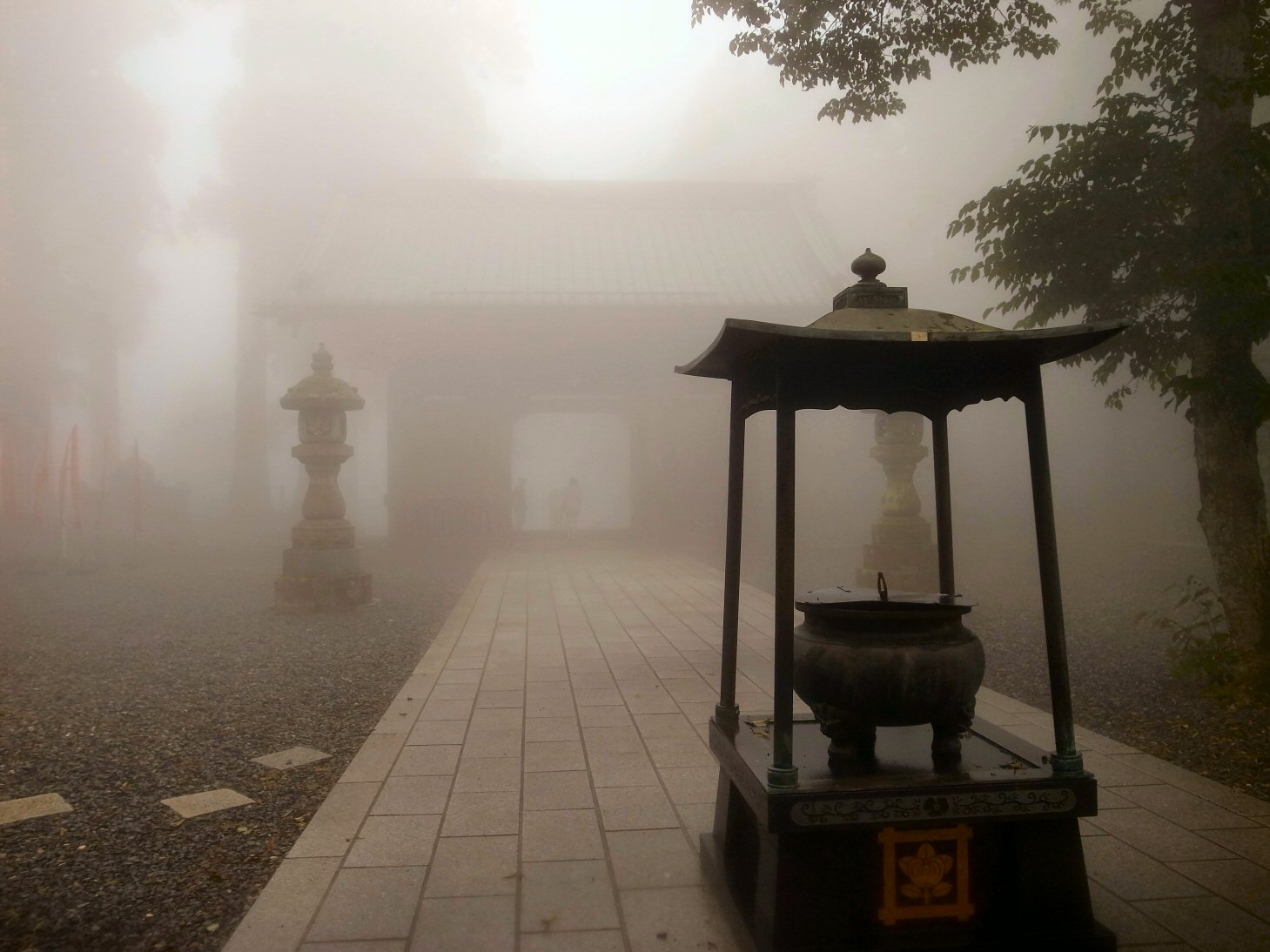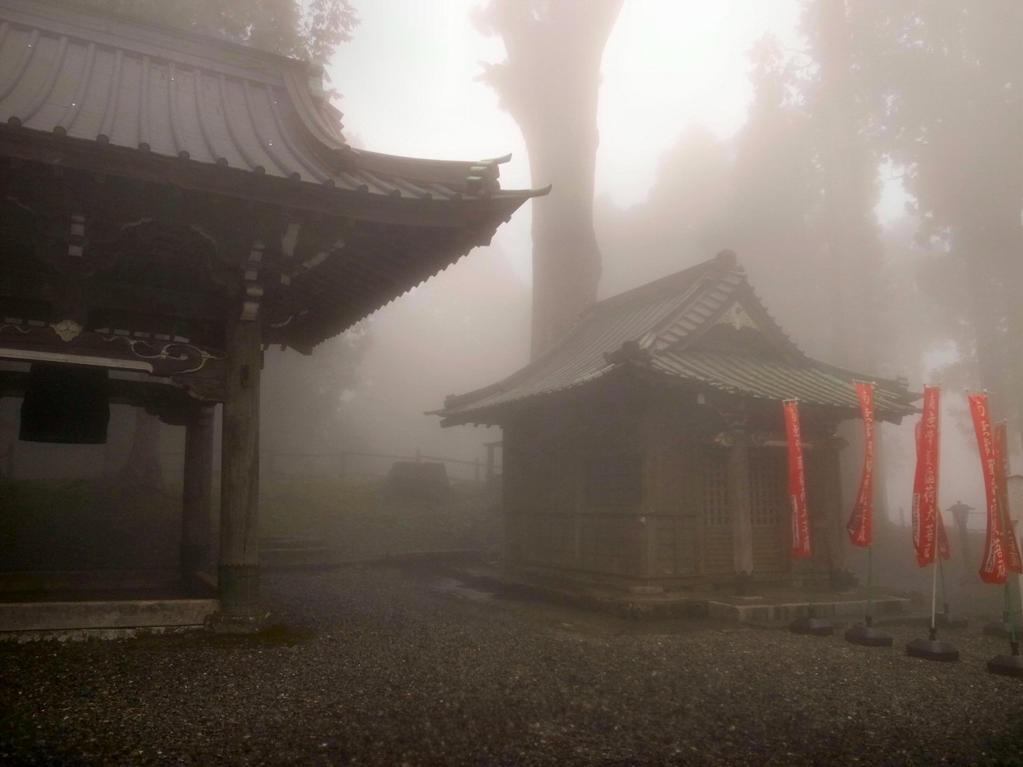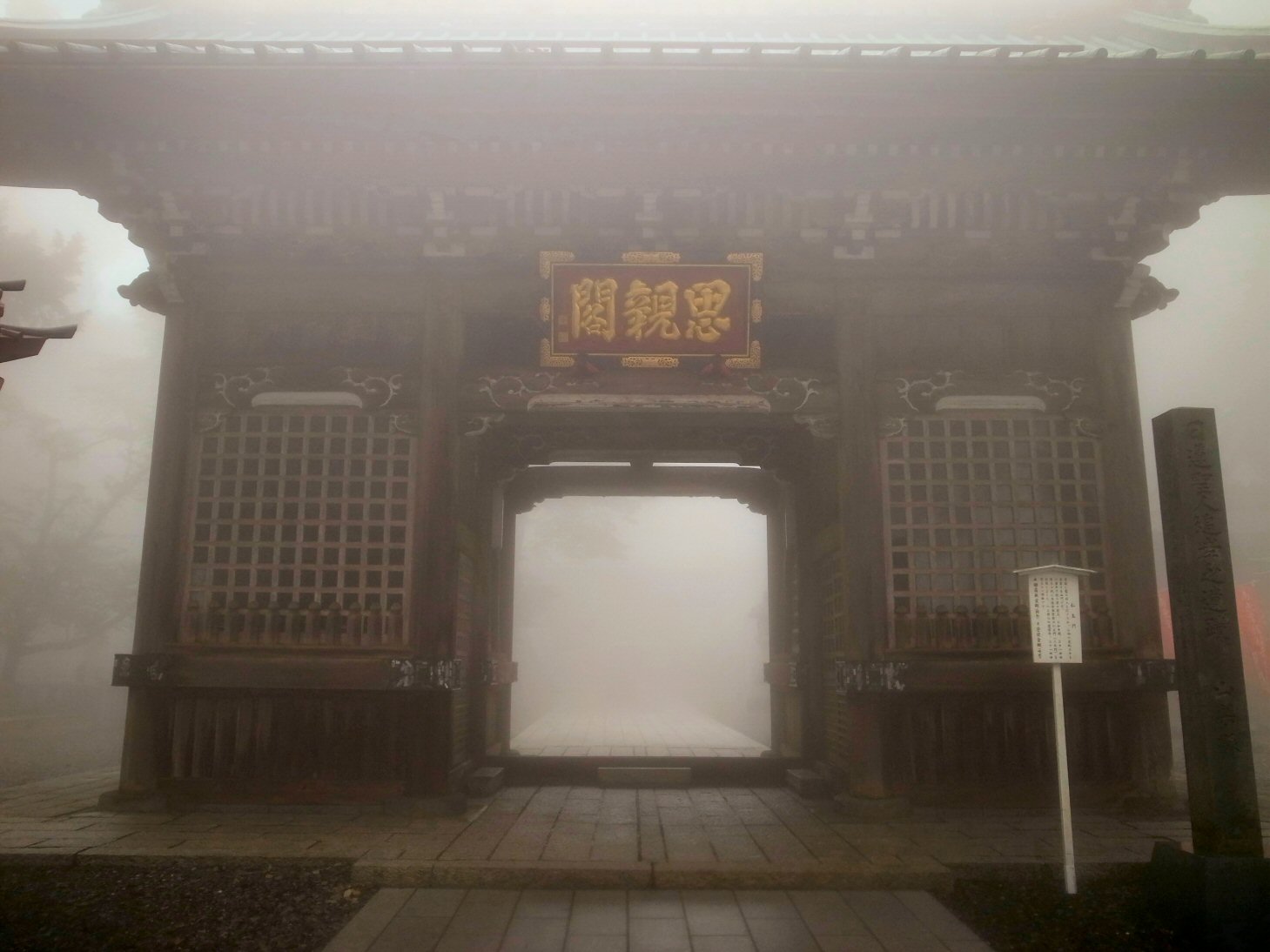 ケーブルカーに乗って奥院を訪れました。霧の森の小さなお寺に日蓮宗の木魚と南無妙法蓮華経の読経の声が響き、幽玄の世界。それは信心のないぼくを諫めているのではないようなのです。