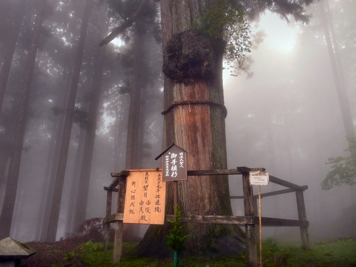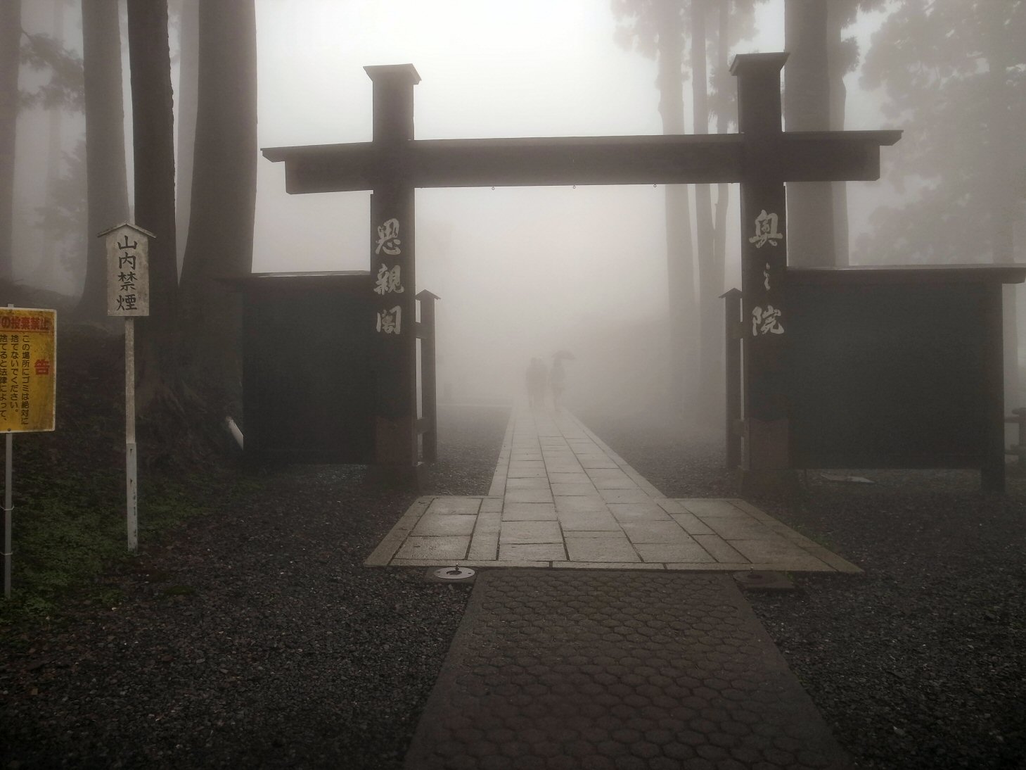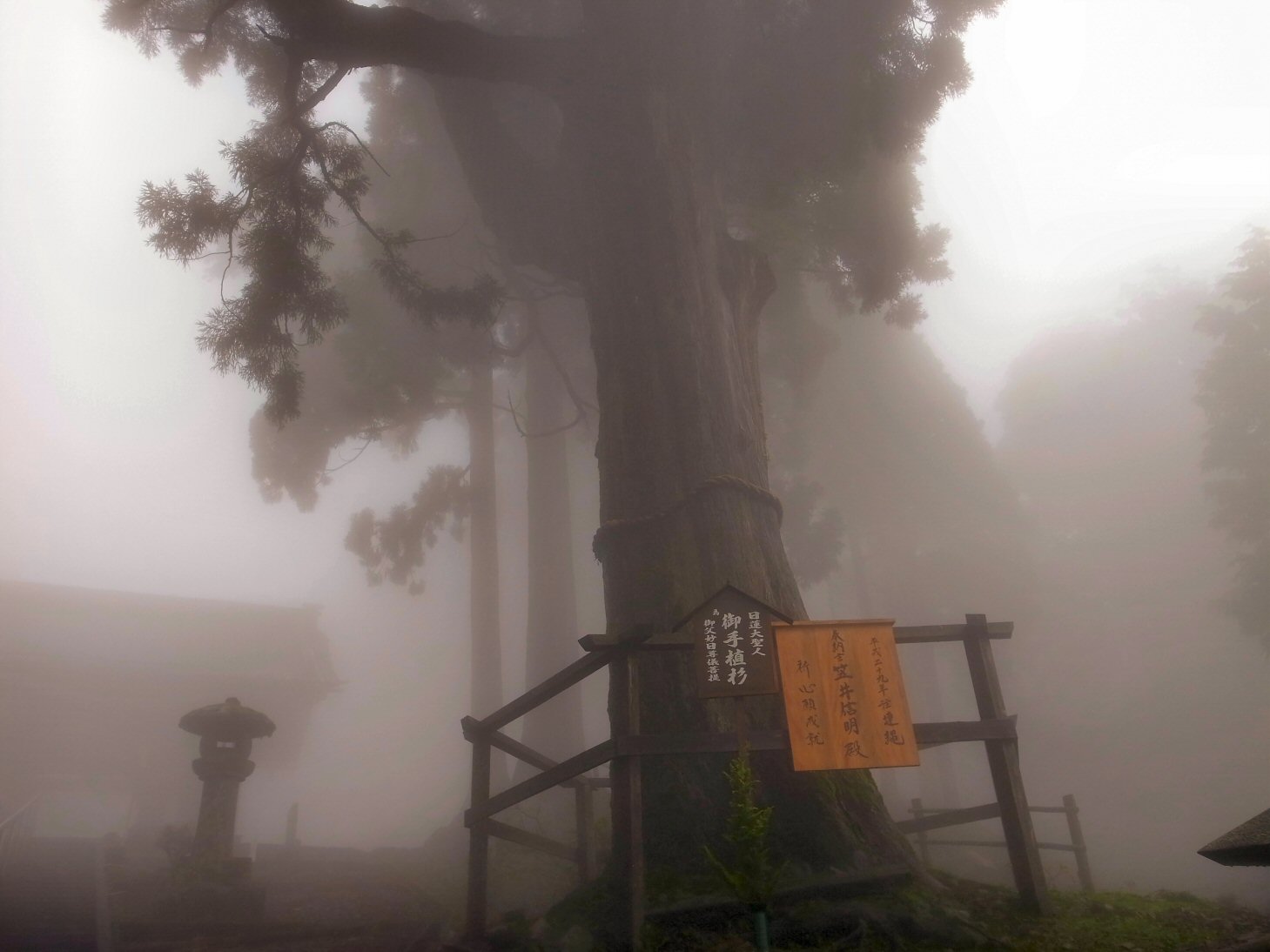 ケーブルカーに乗って奥院を訪れました。霧の森の小さなお寺に日蓮宗の木魚と南無妙法蓮華経の読経の声が響き、幽玄の世界。それは信心のないぼくを諫めているのではないようなのです。