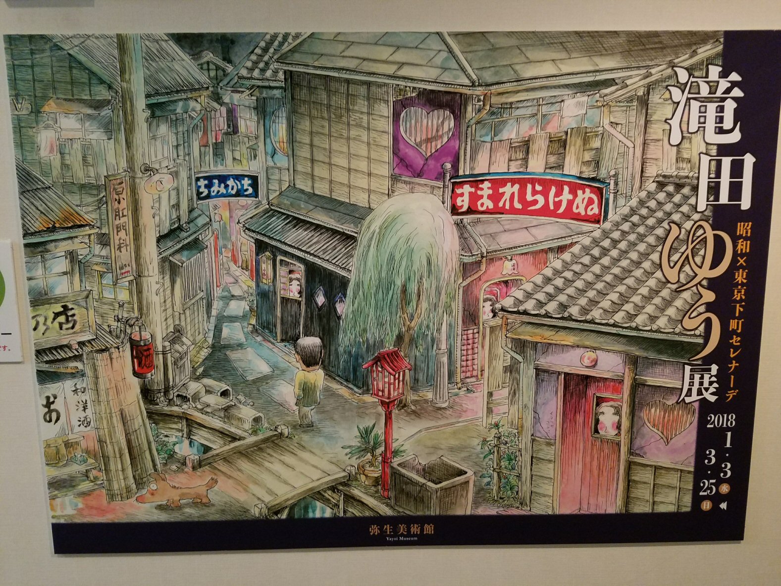 そして、てくてく歩いて行って、弥生美術館で「昭和×東京下町 滝田ゆう展」を見ました。この人も今は無き漫画雑誌「ガロ」に掲載した「寺島町奇譚」ブレイクしたのか。偉大な漫画雑誌だった。漫画原稿も多数、展示されている。平成も過ぎ去ろとしていて、忘れられてゆく昭和のノスタルジーがぼくを惹きつけるのです。