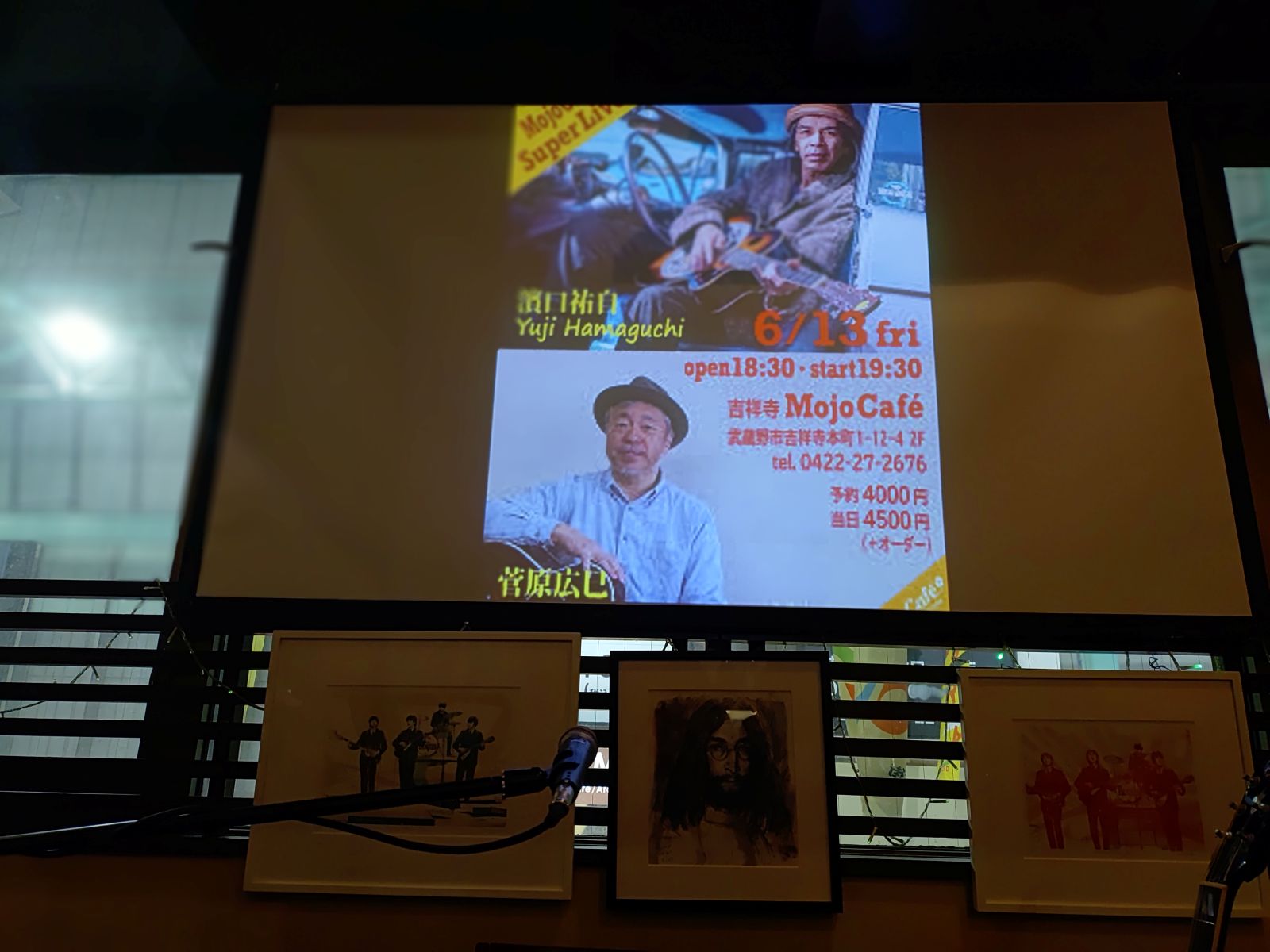 吉祥寺のMojo Cafeにて濱口祐自さんと菅原広已さんのライブを見ました。フィンガーピッキングでのアコースティック・ギターの名手のお二人、まず出てきていらしたのが菅原広已さんでした。そのトーキング・ブルースがギネスビールを飲んだぼくの腹と心にしみわたって気持ちいい。そして、濱口祐自さん登場。紀州弁のおしゃべりも面白く、濱口祐自さんのアコースティック・ギターでのブルースのRobert Johnson、ラグタイムのBlind Willie Blake、はたまた、クラシックのエリック・サティの「グノシェンヌ」やら映画「禁じられた遊び」のテーマ、オリジナルの曲もあるインストゥルメンタルは今、世界一のような気もするのです。なんと、ギターは楽に弾けることにこしたことはないと、「グノシェンヌ」や「禁じられた遊び」のテーマは営業秘密の自分で開発した調弦方法を採用しているともおっしゃっておられました。楽しい夜はふけていったのです。