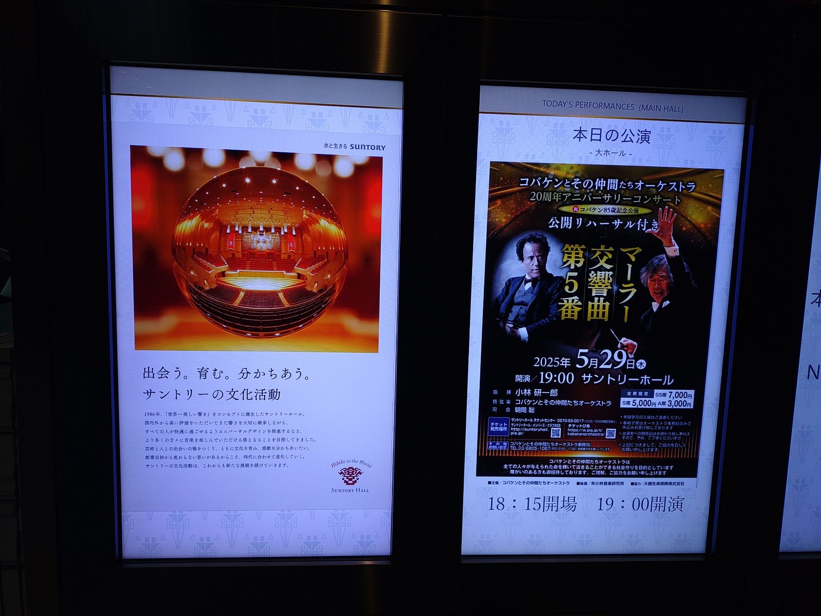 いつか、マーラーの交響曲第5番を生のオーケストラで聴きたい、と思っていたのですか、ついにサントリーホールでその夢はかなえられました。オーケストラの名前は「コバケンとその仲間たちオーケストラ」で、コバケンとは指揮者の小林研一郎さんのことで、オーケストラの面々は総勢120名にもなるアマチュアオーケストラ。コンサート会場の入口でわたされたプログラムにはこうあります。