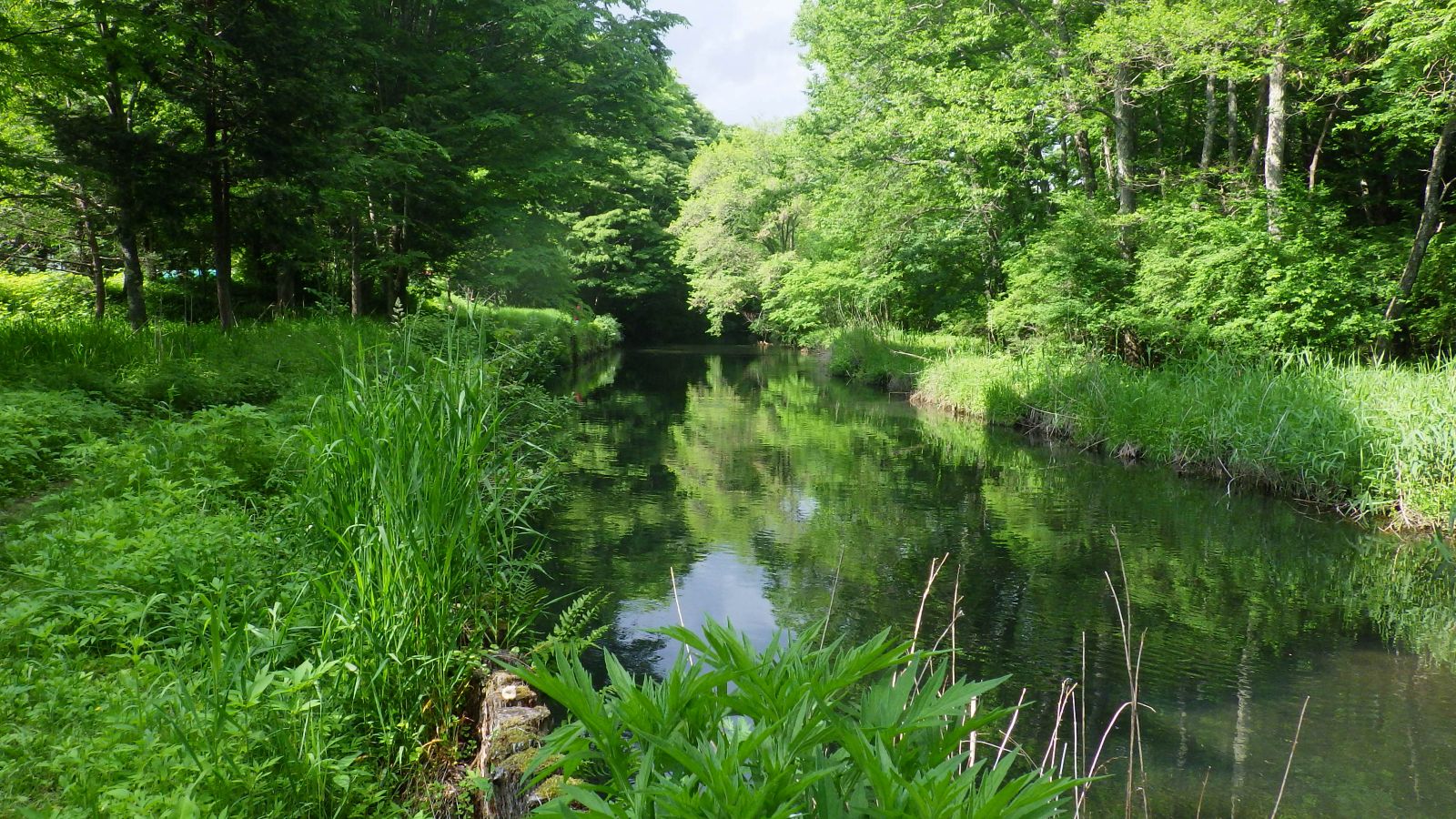 二日目の朝ごはんの前に宿から川が近いので、釣りに行きました。初めて、秋田犬を小さくしたような犬を連れて散歩しながら、見回りをしているおじさんに釣れますか、と声をかけられました。おじさんのいうように、小雨の中、単発のライズ(魚が水面近くを泳いでいたり、水面から少し影を出したりと、釣りをしている本人に姿を現すこと)が多い。やっぱ、釣れなかった。忍野の魚は百戦錬磨のプロの魚です。そして、釣りの道、釣道はきびしい。けれども、ぼくは今回の釣りの旅でバレた山女魚から忍野の釣りのコツを教わったようでもあるのです。朝ごはんを食べた後は雨も本降りとなって、釣りをせずに、帰路に向かってしまった。梅雨明けとかなどに、また来たい、と思います。