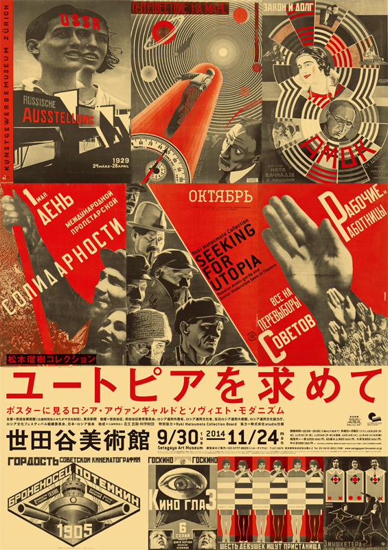 古友だちのフェースブックのページを見ていたら、こんなのやっているんだと思って、世田谷美術館での展覧会「ユートピアを求めて ポスターに見るロシア・アヴァンギャルドとソヴィエト・モダニズム」に行って来た。今日が開催最終日だそう。混んではいなかったけれど、けっこう若い人が見に来ていた。デザイナー志望とかそういう人たちなのだろうか。DCブランド「BA-TSU」の創業者である松本瑠樹氏の収集したロシア革命後の20年にも満たない、映画やプロパガンダのポスターばかりが美術館を埋め尽くすかのように展示されていた。