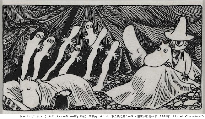 ムーミンが第二次戦時下に生まれたのを知った。震えるような線で小さく小さくノートに書きとめられたのだと思う。それが戦争の終わりとともに開花した。フィンランドの驚くべき現代史を少し考えてしまう。その初期のムーミンの原画はほんとうに小さいものだった。その小ささも、何か秘密を打ち明けられるようでかわいいなぁ。