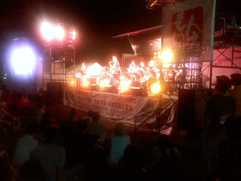 相模大野で行われているジャズ・フェスティバル、もんじぇ祭りに行く。午後の4時半ごろ着いて、いくつかのバンドや人たちの演奏を聴き、友だちのバンド、Ann-スミ☆アヤコBand-を見て帰ろうと思っていたのだけど、その後、ビッグ・バンドが演奏するというので、それを1曲だけ聴いて帰ろうと思って聴いたら、これが素晴らしく、前の方にまで行って、最後まで聴いてしまった。おまけにラストの花火まで見たよ。