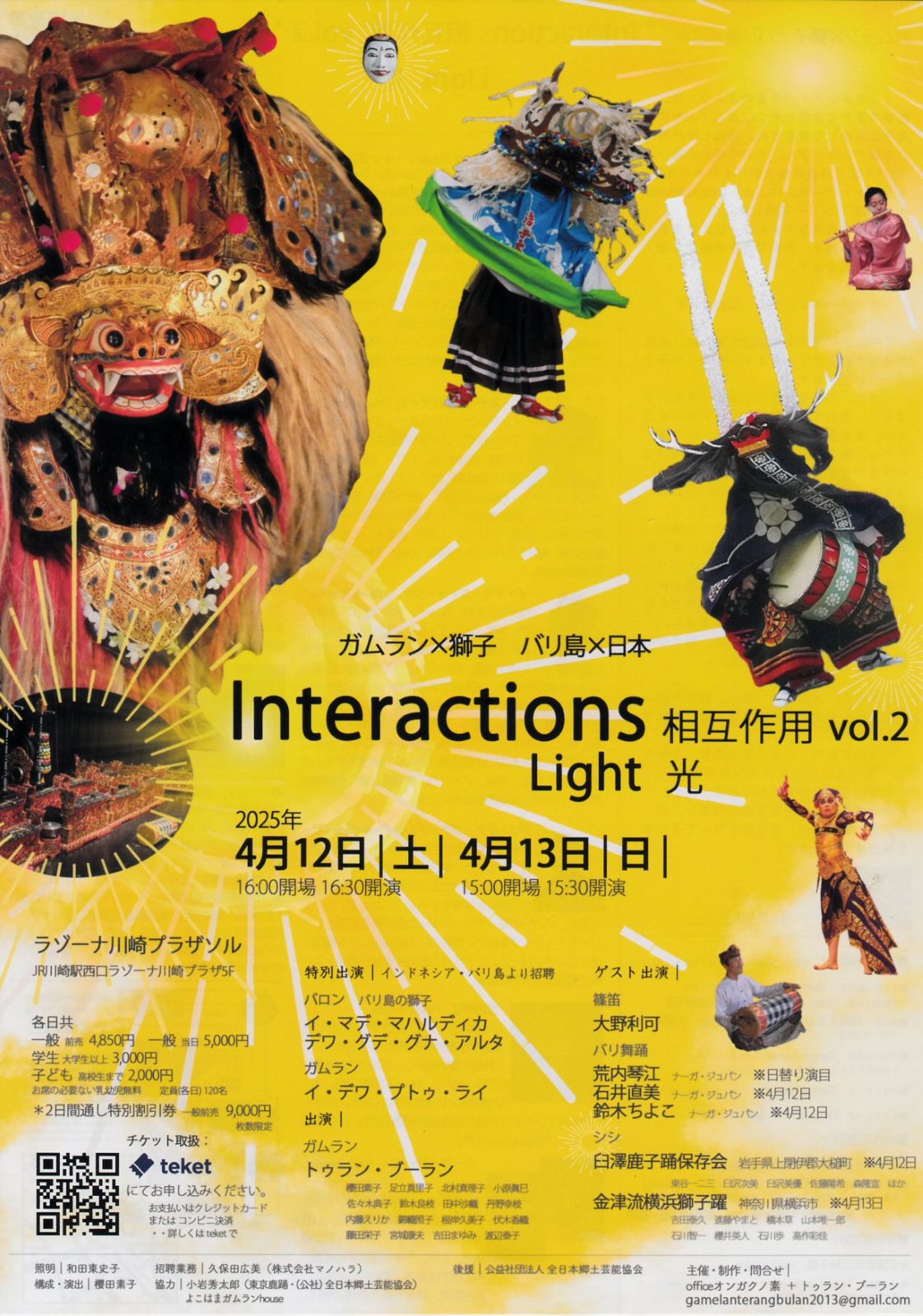 『ガムラン×獅子 バリ島×日本「Interactions(相互作用)Vol.2 Light 光」』というコンサートをラゾーナ川崎プラザ・ソルで見ました。インドネシアのバリ島のガムランと日本の鹿踊りのコラボレーションのコンサートでした。
