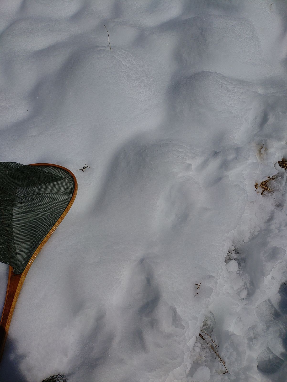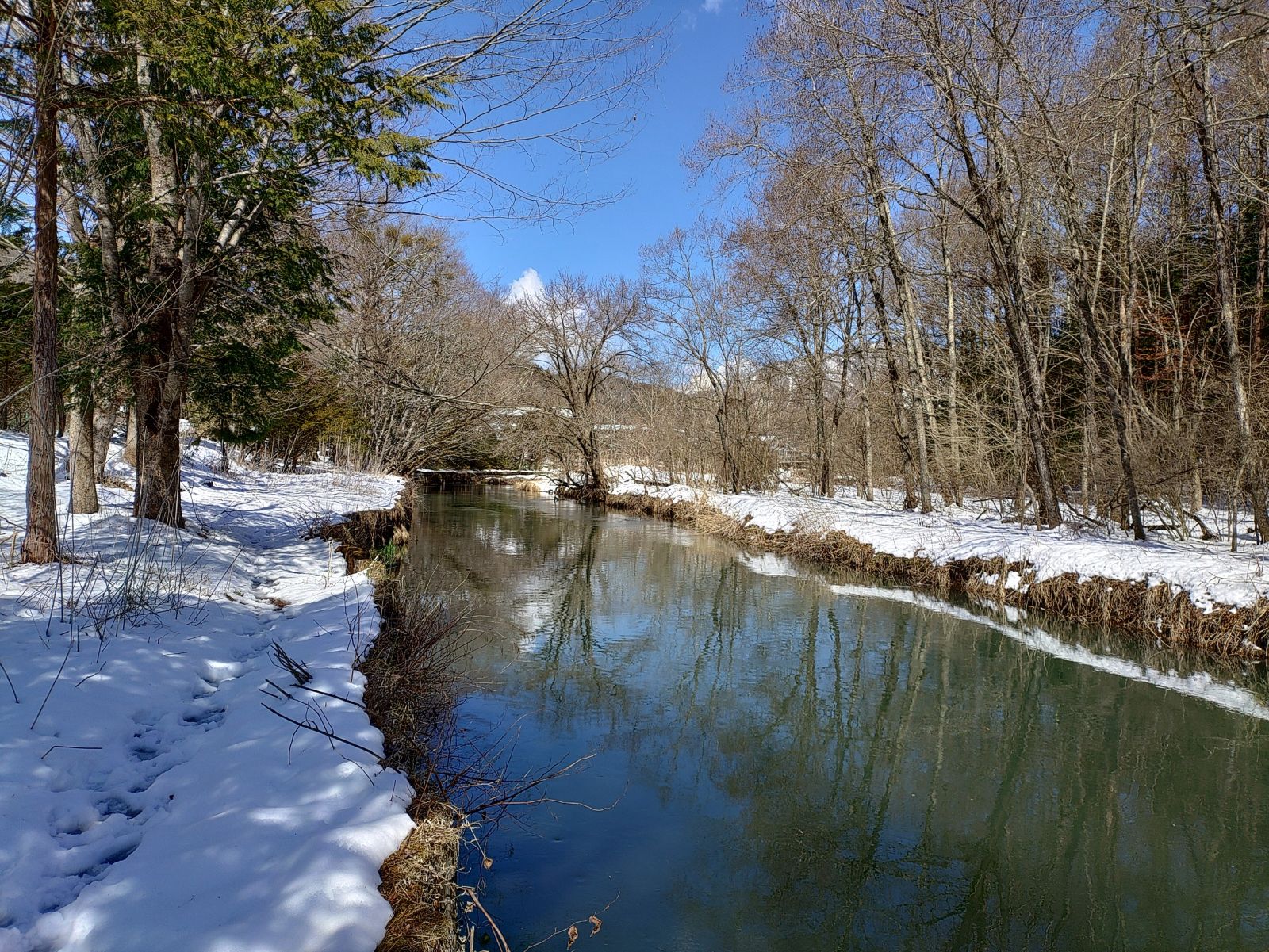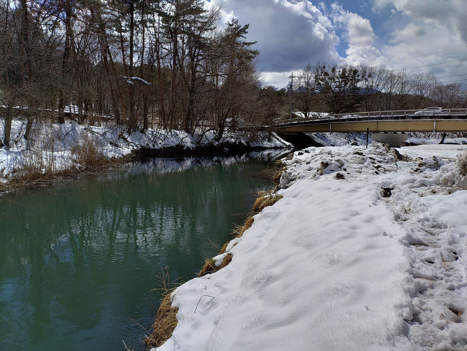 閑話休題、雪の跡の残る、忍野の桂川の川辺をさまよい、ボーズではなく、数匹釣れたし、楽しい旅でした。