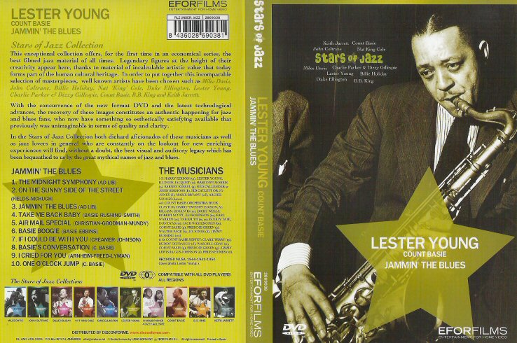 真夜中に聴くジャズってどんな音楽なのかが映像と音に残っていました。中古で"Lester Young Count Basie Jammin' The Blues"ってDVDを町田のディスク・ユニオンで見つけ、買って、真夜中の家で見とりやす。スタイリッシュな映像で決まっている1曲目から3曲目までの流れ("The Midnight Symphony"、"On The Sunny Side Of The Street"、"Jammin' The Blues")がかっこいい。Lester Youngって本当にサックスを横にして吹くのだなぁ。ムーディーでかっこいい。