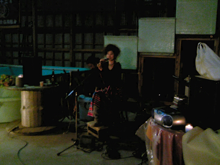 コンサートを終えて、主催者の人たちの打ち上げに紛れ込む。漁師船の倉庫が会場で、そこに小さなPAがしつらえていて、地元のフォーキーの個性豊かな、しかもガッツもソウルもある弾き語り演奏を聴きながら、地元の普段は漁師などをしているおっちゃん、おばちゃんらとどんちゃん騒ぎの酒盛りとなった。魚料理などのてんこ盛り、次々の出てくるビールとワインをがばがば飲んだ。最後にスミ☆ちゃんの歌ったアカペラの"Rose"に胸がじーん。