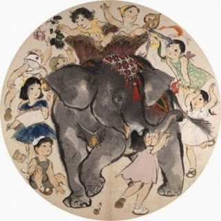 さて、「マンボジャンボ」の歌詞によりこの項はめでたくおひらきとあいなります。ちなみに歌詞に出てくる「マクンバ」とは、アフリカの土着宗教がブラジルに伝わって発展した魔術や呪術色濃い民間信仰、ブードゥー教の要素を歌や踊りに取り入れたカルト宗教、黒魔術の一種で、呪いの標的にされた信徒には嫌がらせが繰り返されることがある、ということであります。絵は川端龍子の描いた第二次世界大戦後に初めてインドからやって来た象のインディラの「百子図」であります。その後すぐ、インドから象のはな子もやってきたのですな。さぁ、どうぞ。