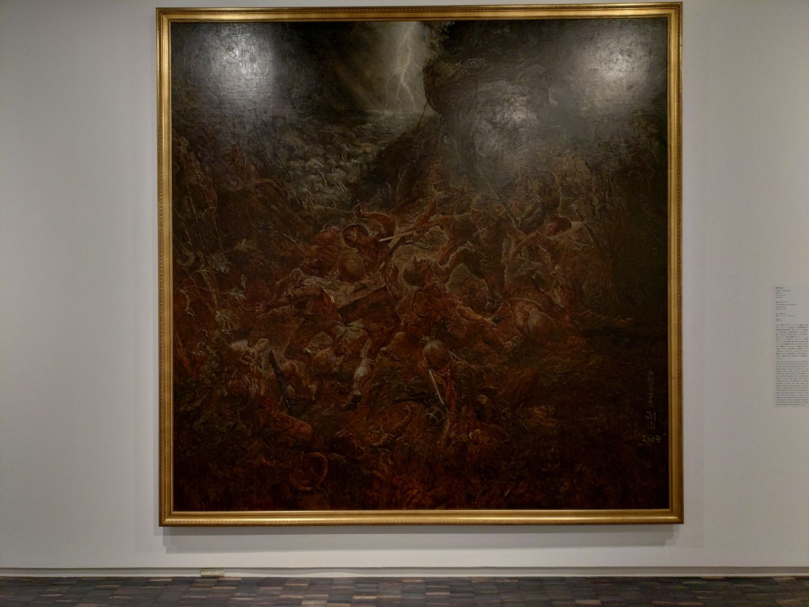 いつものように第二次世界大戦下の戦争画が数点、展示されていて、その中に藤田嗣治の「血戦ガダルカナル」もありました。戦時下の兵士たちの獣性を表現して限りなく、その大きな絵は、まったくの地獄の図を呈している。このような絵を戦時協力の絵として、時の軍部政権の政府に提供した藤田嗣治とは何ものなんだ? 戦中、藤田は、仲間の画家に、日本は負けますよ、そうすればわれわれの時代だ、ここがききますからね、と自らの腕を軽くたたき、にやっと笑った、という。戦後、藤田は戦時協力の批判にあい、自身の芸術の故郷、フランスに戻り、二度と日本に帰らなかった。藤田嗣治とは何ものなんだ?