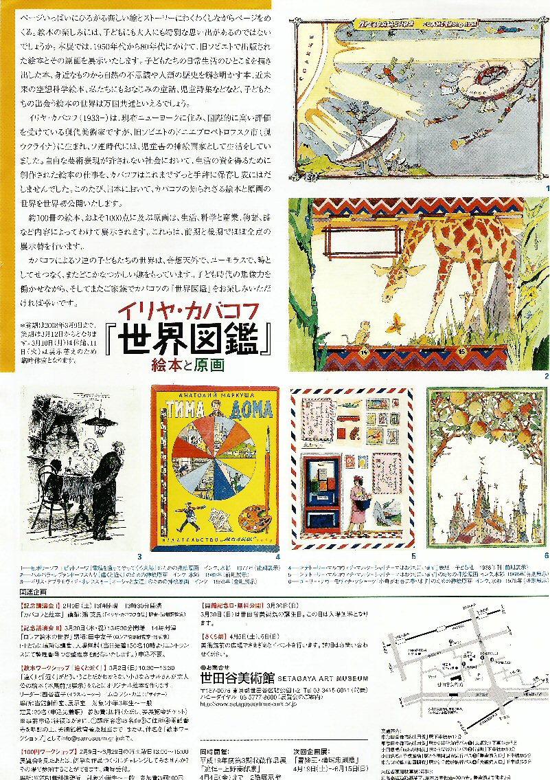 イリヤ・カバコフというロシア出身の現代美術家(今はニューヨーク在住で現代の最先端を行くインスタレーション作品を発表しつづけている)がソビエト連邦時代に描いた絵本とその原画を一同に集めた展覧会に世田谷美術館に行ってきた。