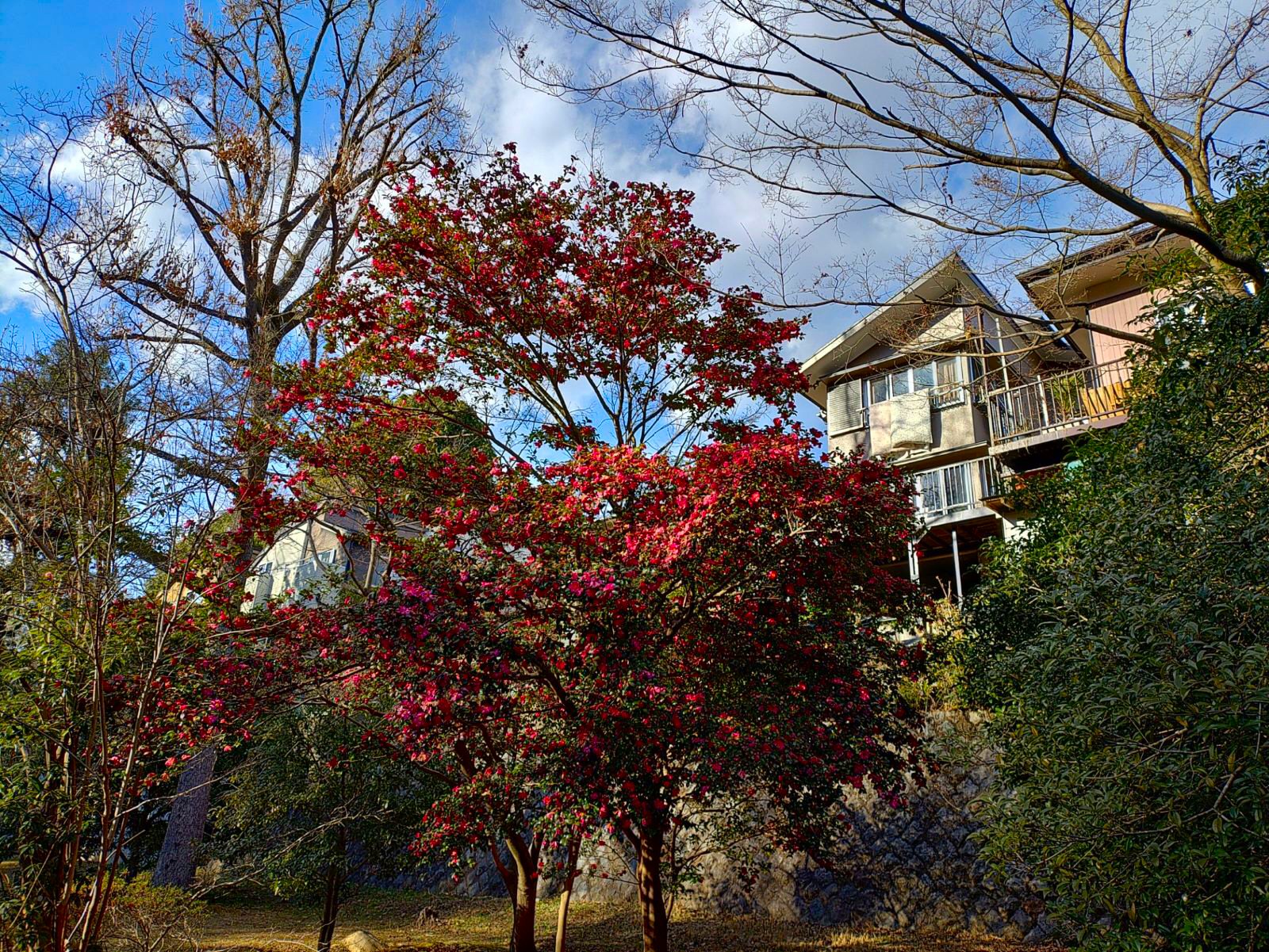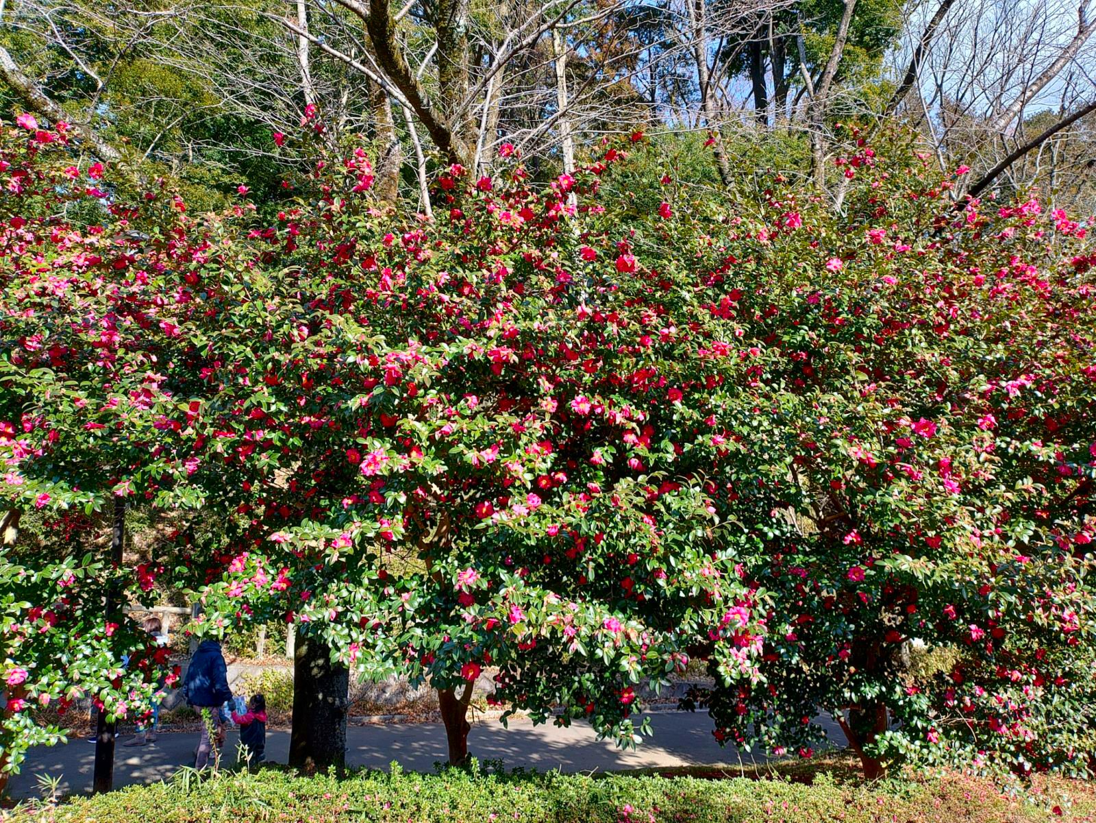 町田市国際版画美術館のある芹ヶ谷公園を散歩すると、椿の花が満開で美しい。