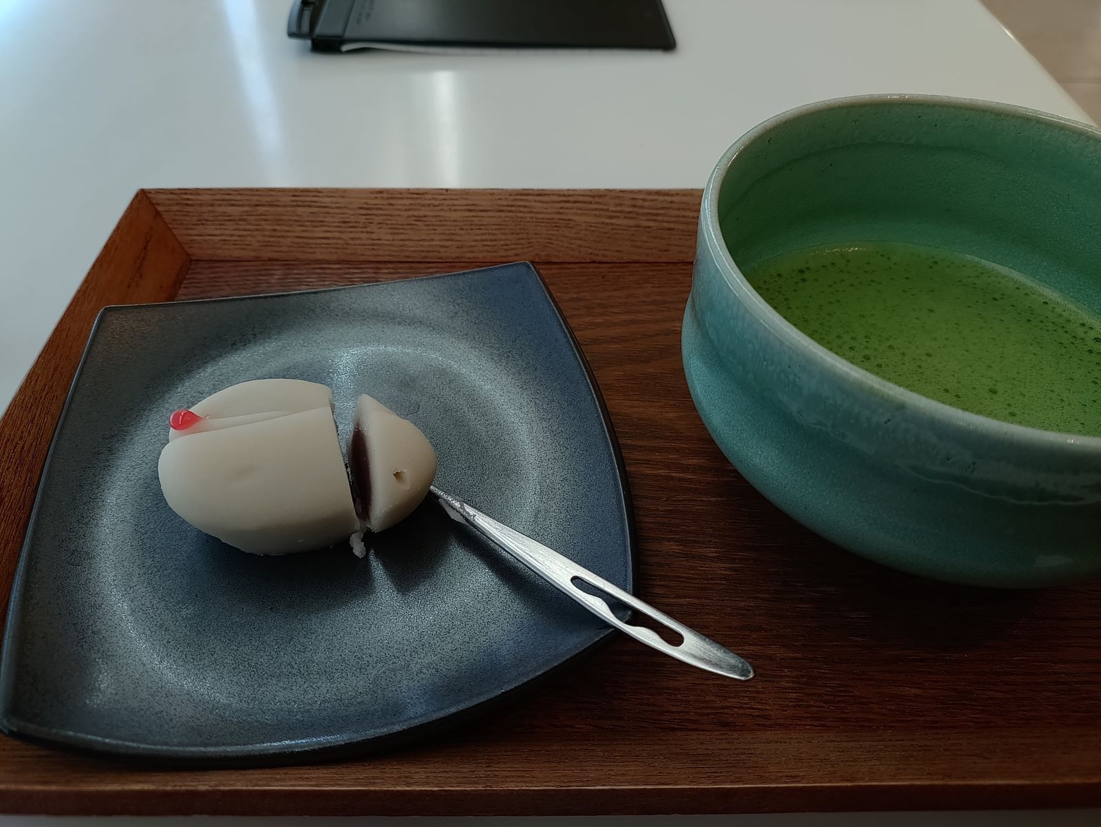 余談ながら、山種美術館の中にあるカフェで抹茶をたのんでみました。抹茶がこんなに甘くて、美味しいものだとは知りませんでした。