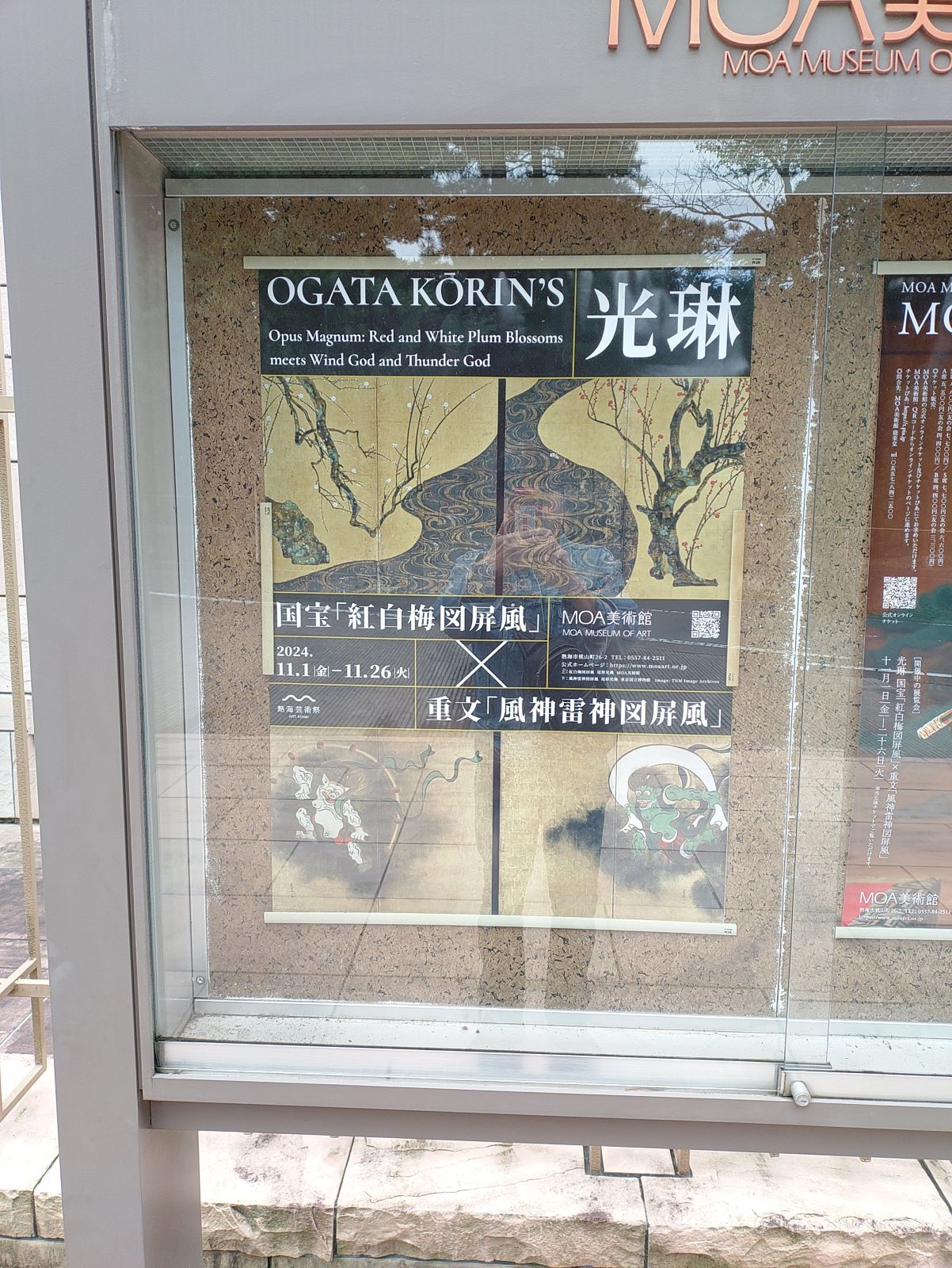 MOA美術館に『光琳 国宝「紅白梅図屏風」× 重文「風神雷神図屏風」』展を見に行きました。尾形光琳の「紅白梅図屏風」と「風神雷神図屏風」が同時に見られる展覧会は39年ぶりということらしい。再びこのような展覧会が開かれるのが39年後というと、ぼくはこの世には多分、生息してはおらず、霞か雲か土になっているのかと思えば、今、見なくてはいけないような気がして、熱海まで車を走らせたのです。
