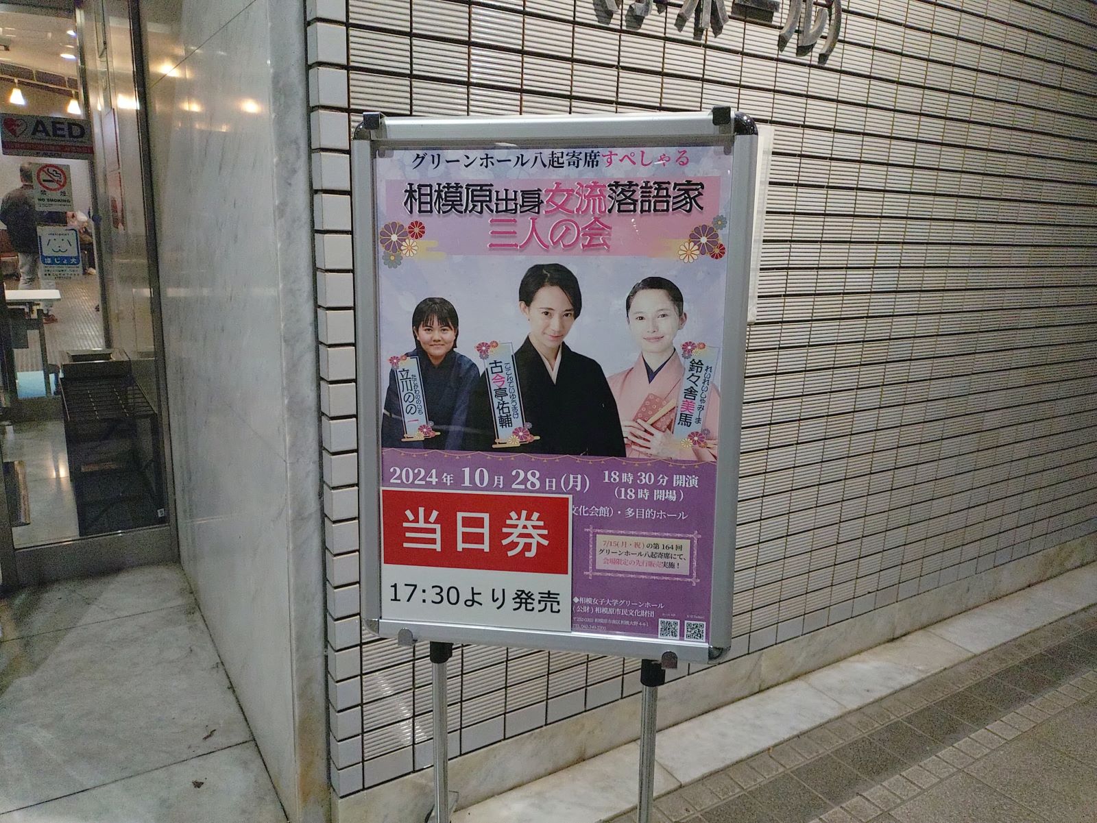 相模大野の相模女子大グリーンホールで『八起寄席すぺしゃる 相模原出身女流落語家三人の会』を見ました。相模原出身の三人の女流落語家とは二つ目の古今亭佑輔さんと鈴々舎美馬さん、前座の立川のの一さんの御三方。相模原に女性落語家が三人もいるのなんて驚きです。更には古今亭佑輔さんは東洋大学出身でぼくの後輩にあたる人ではないですか。ちなみに美馬さんは桜美林大学出身で、のの一さんは日本大学出身だそうで、近ごろでは東京大学出身の落語家もいるそうな。