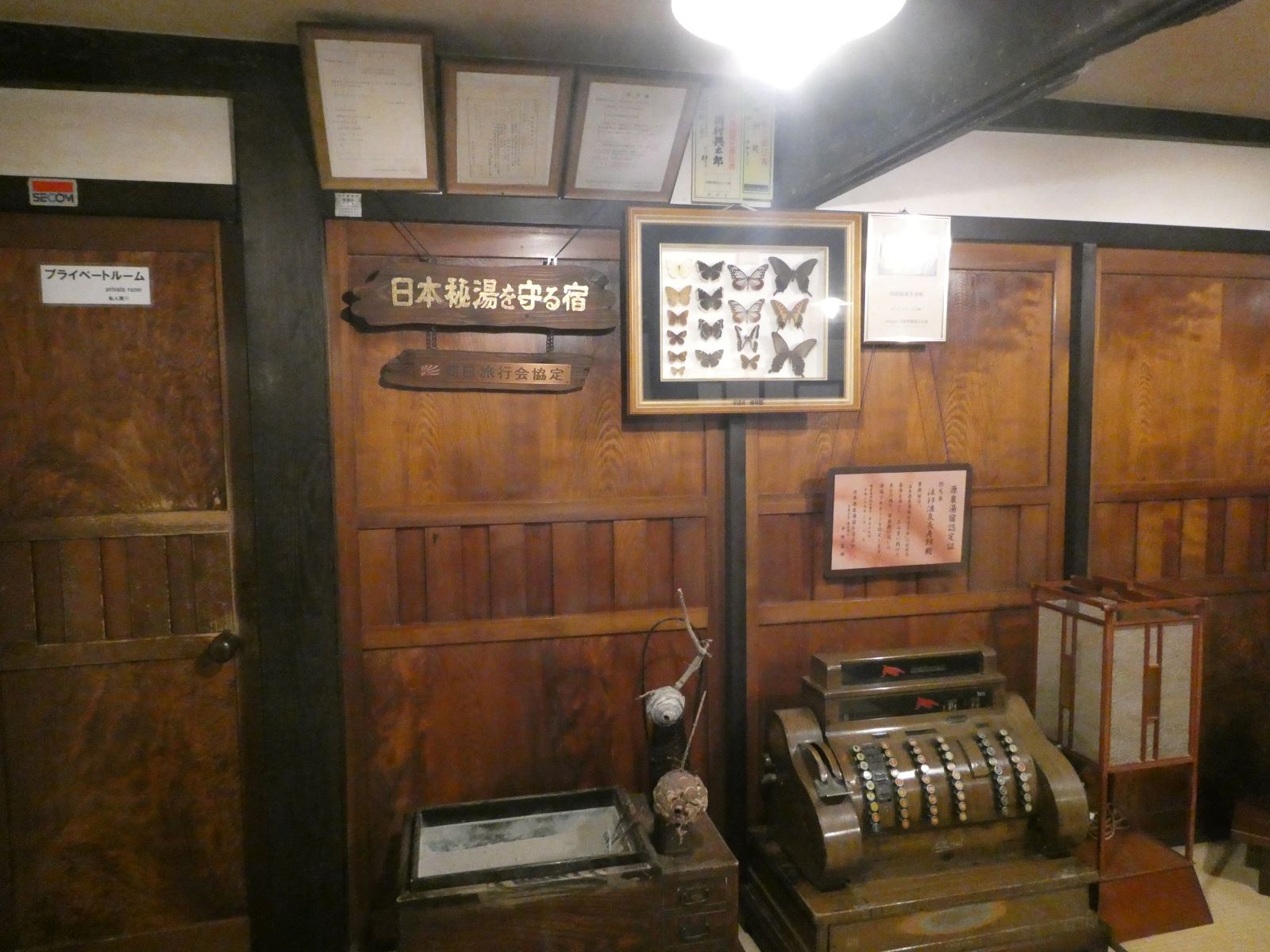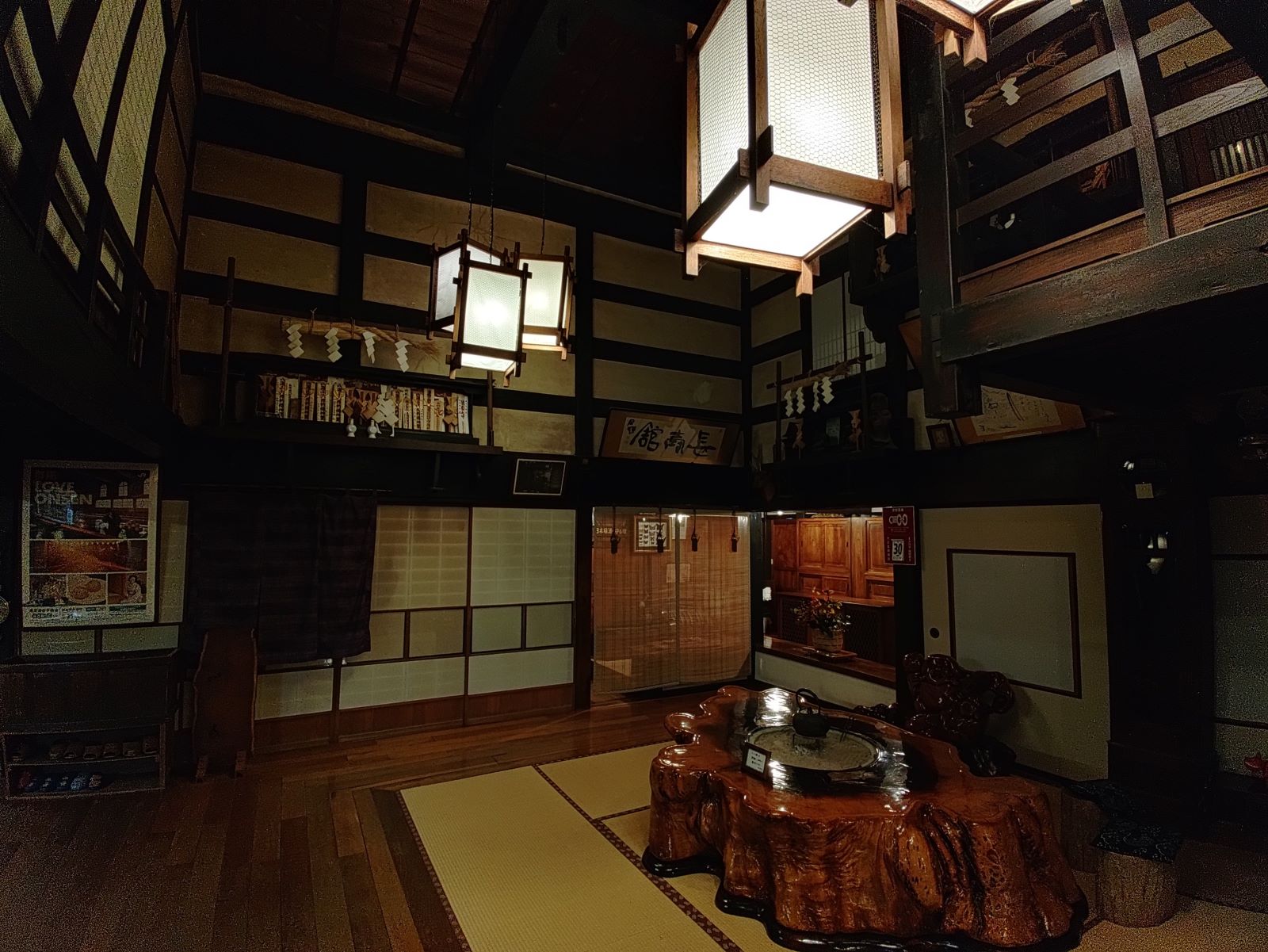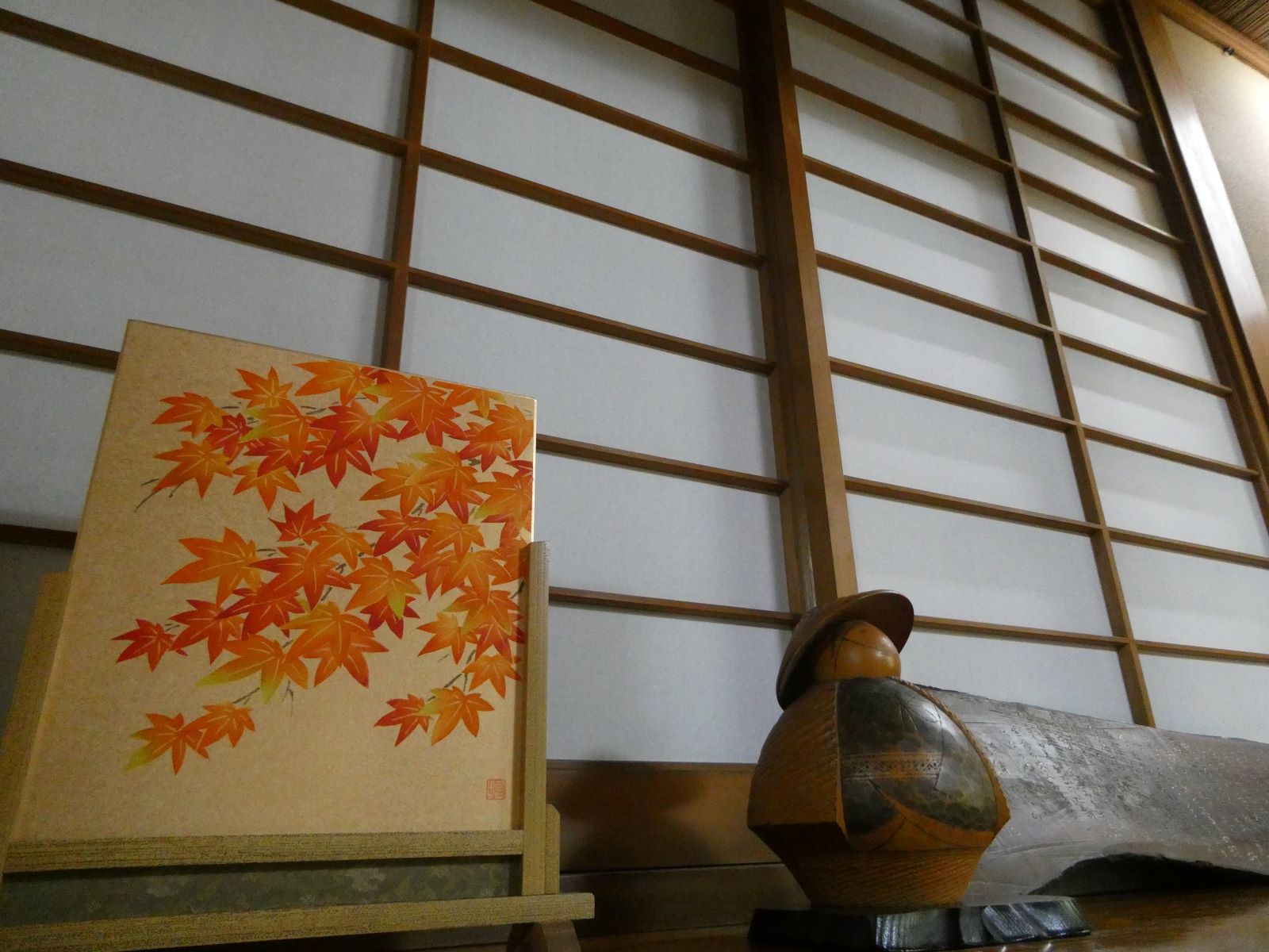 館内の古い日本建築と屋根に見える太い黒い梁も美しい。飾られた調度品もぼくの心を歴史の向こうに誘うかのようなのです。