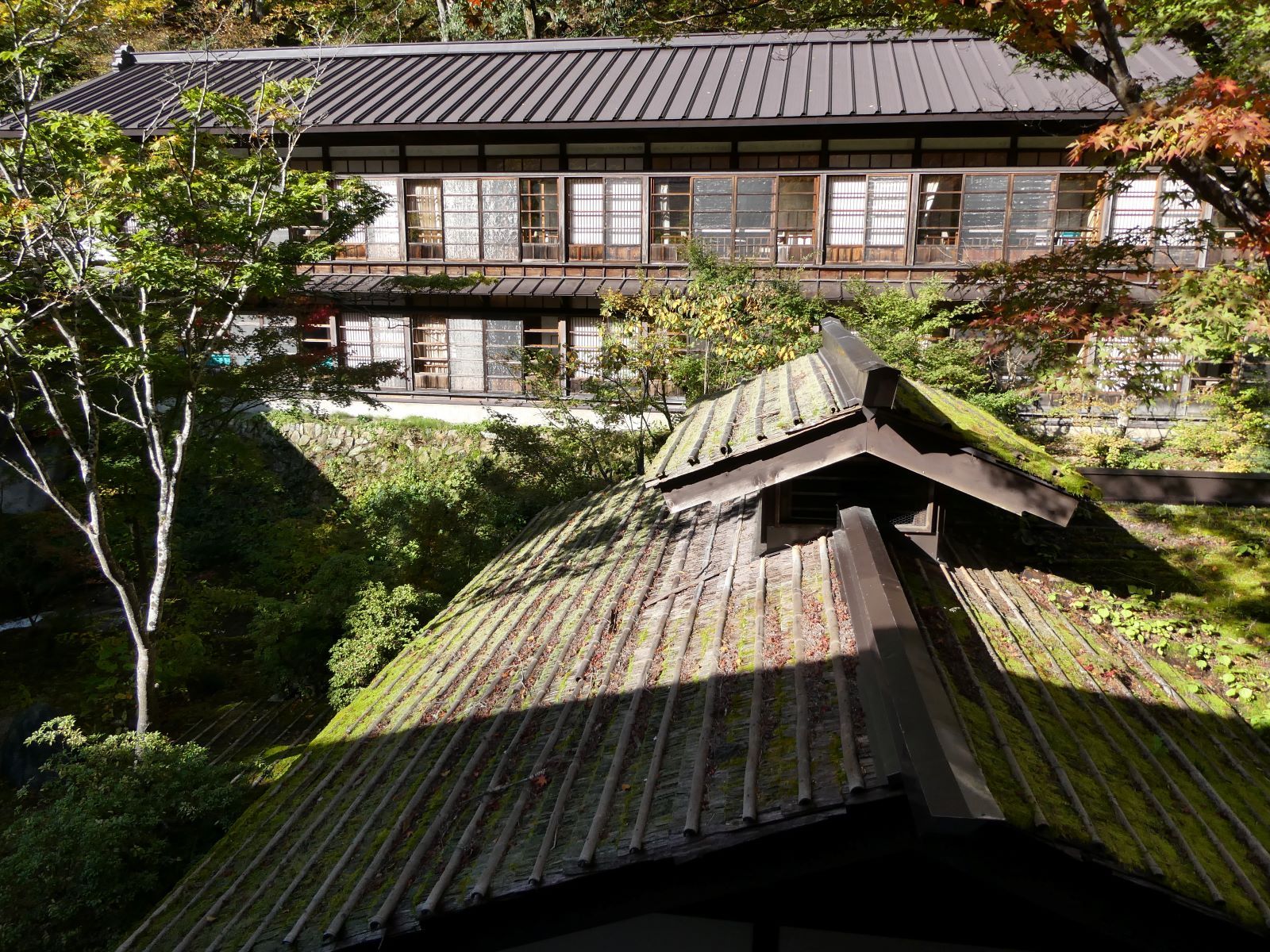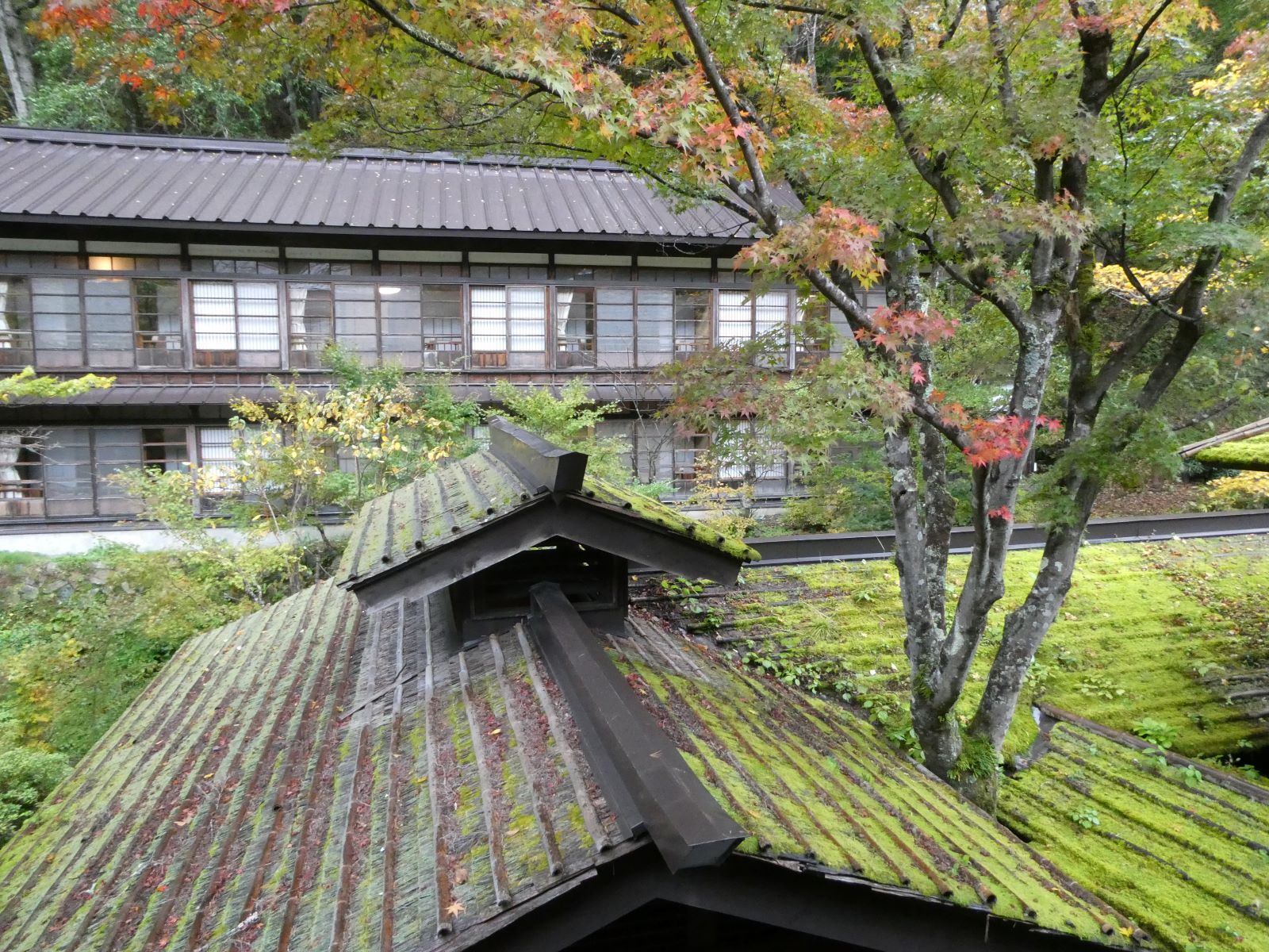 窓に舞う紅葉ははらり湯はぷくり
