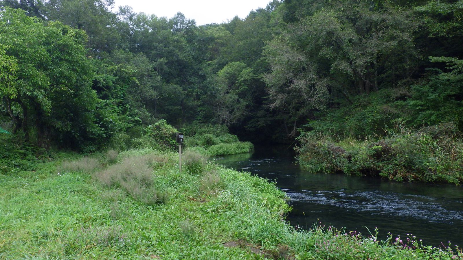 ここにこれだけ釣り人が入っているのを初めて見て、驚きます。いつも停めている駐車場もぼくが駐車して満杯なのは、十月一日から禁漁の期間になるからかしら? その明日から来年の三月十四日まで、釣って放つ釣り人も、釣って放たない釣り人も川岸に立たなくなるのを魚たちはどう感じ、思っているのでしょう? この忍野の釣り人の多くは釣れば放つ人なのですが、魚たちは安心になったと思うのでしょうか?