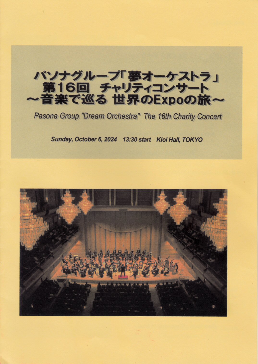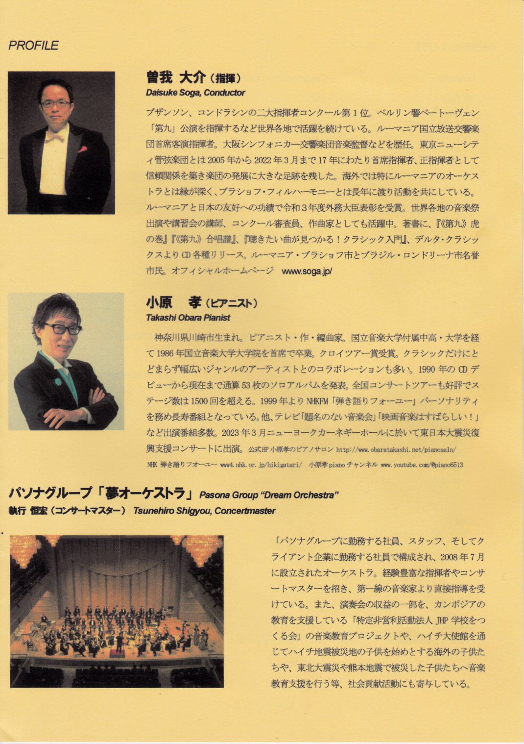 紀尾井ホールでパソナグループ「夢オーケストラ」のコンサートを見ました。夢オーケストラは、昼間はパソナグループで働いているプロのクラシックミュージシャンではない人たちの集団で、ぼくはその力量と技術に驚いてしまうのですが、そこにプロの指揮者である曽我大介さんが入り、ラストの曲にゲストのプロのピアニストの小原孝さんが入っておりました。曽我大介さんの立ちふるまいのオーラにも圧倒されてしまいます。