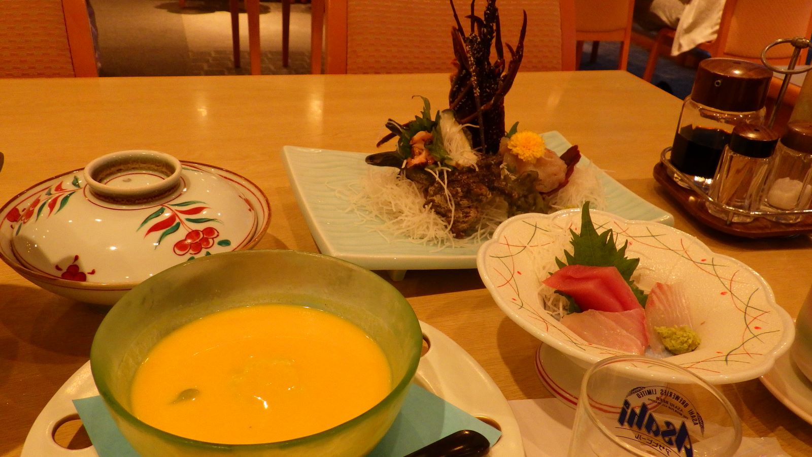 泊まりはいつもの夕日のきれいな伊豆まつざき荘。夕食は伊勢海老、さざえ、あわびで贅沢な美味しさです。伊勢海老の頭を使った味噌汁が濃厚で美味しい。温泉風呂に入り部屋に戻るとき、どこかのお母さんと小学生の男の子が卓球部屋で卓球をしています。幸福とはこういうことをいうのではあるまいか、などと思います。