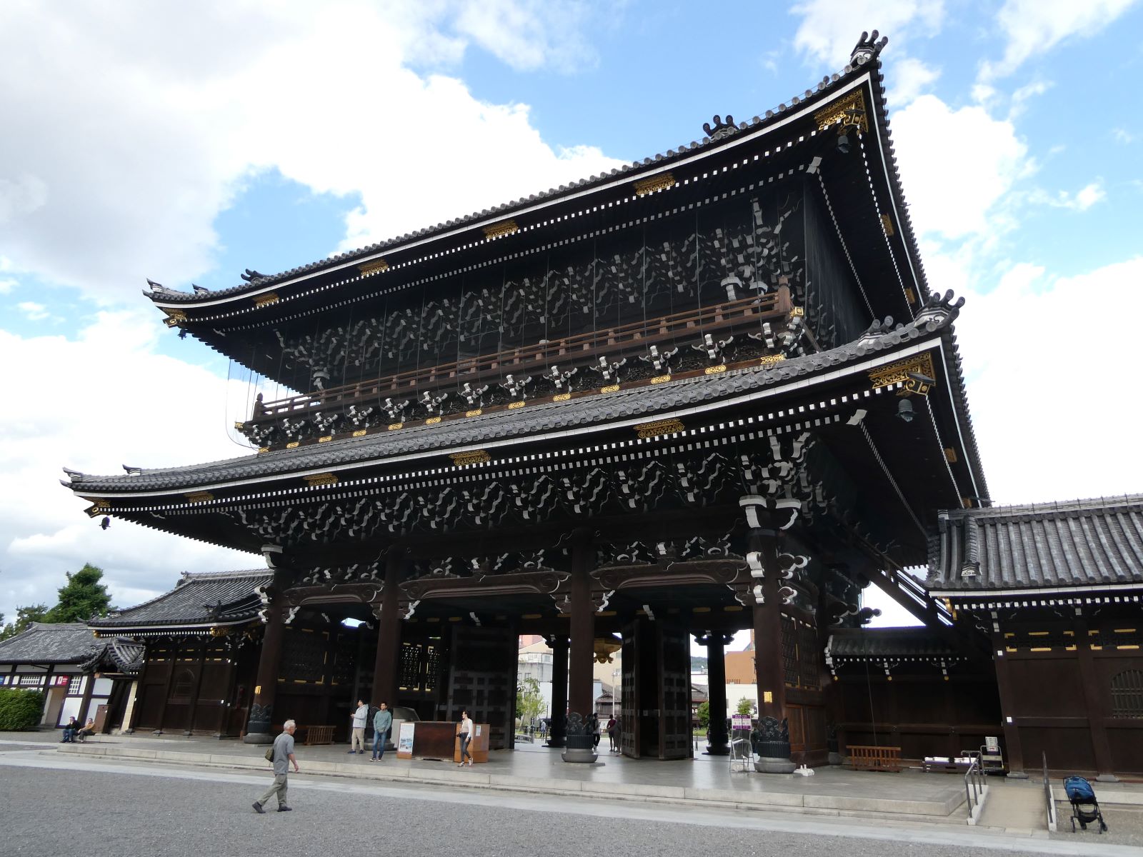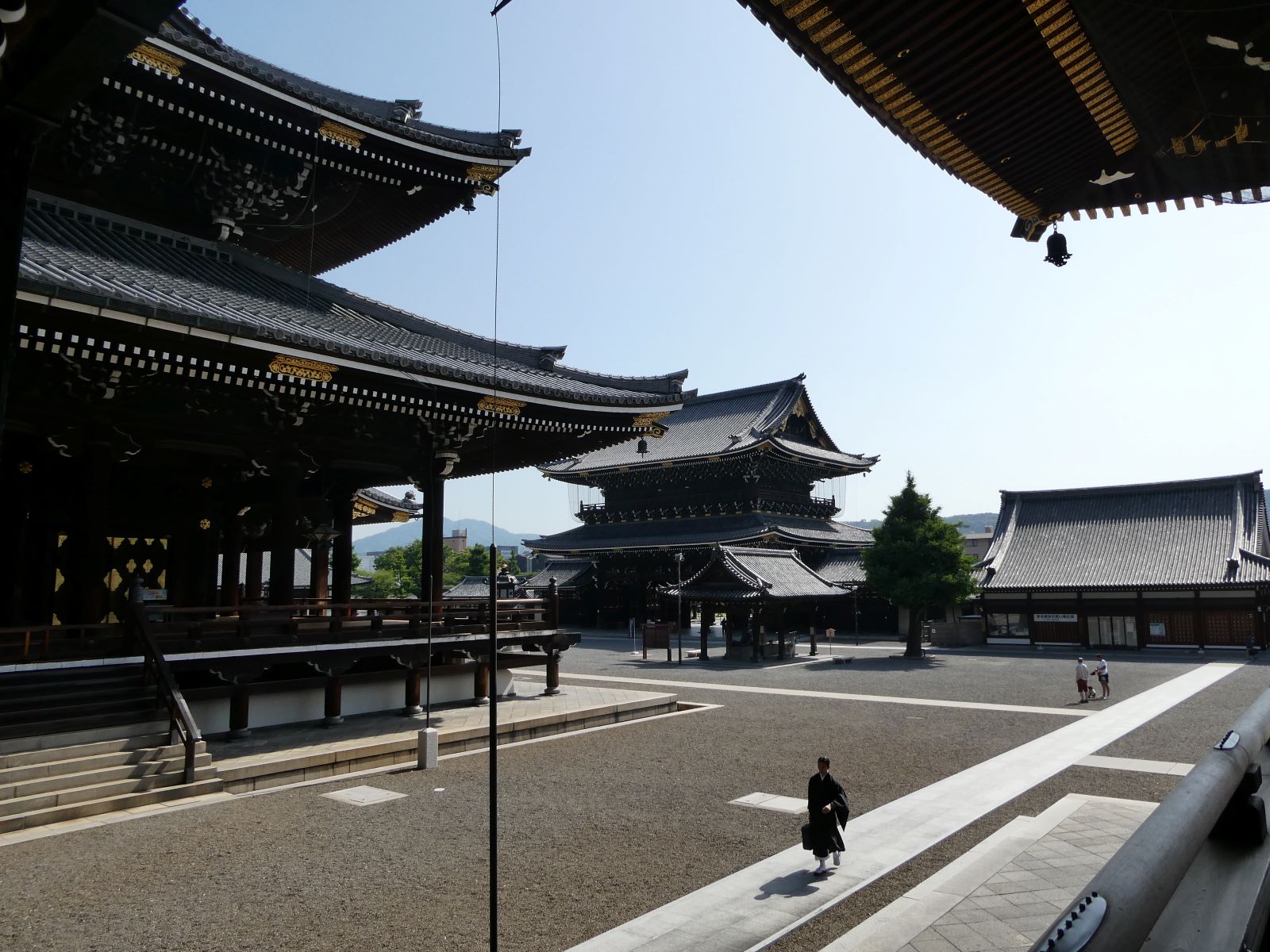 次の日、東本願寺の金障子は午後四時ぐらいに閉まっていたのを知り、再び参ってみることにしました。金障子は開いておりました。正座をし、親鸞聖人の御真影を拝み、教え通りの「南無阿弥陀仏」と唱え、座をくずし、あぐらをかいていると、ぼくの目の前に僧侶が現れ、そこに座り、何人もの、たくさん黒い袈裟を着た僧侶が体育館よりも広い本堂一杯に正座し、ぼくは取り囲まれてしまいました。驚き、ぼくはその場で正座をしなおします。そして、若い女性の僧侶が親鸞聖人の御真影の前に座り「南無阿弥陀仏」と三度唱えると、ぼくの回りの何十人もの僧侶が「正信偈」か「阿弥陀経」かはぼくはに判然しませんが、読経しはじめ、ぼくのまわりの三百六十度からありがたき言葉が響きわたり、届きます。朝の勤行だったのでしょうか、予想外のすごい経験をしました。その全体の姿を思い浮かべると滑稽でもありますが、これもありがたきご縁。生きていく力をもらいました。