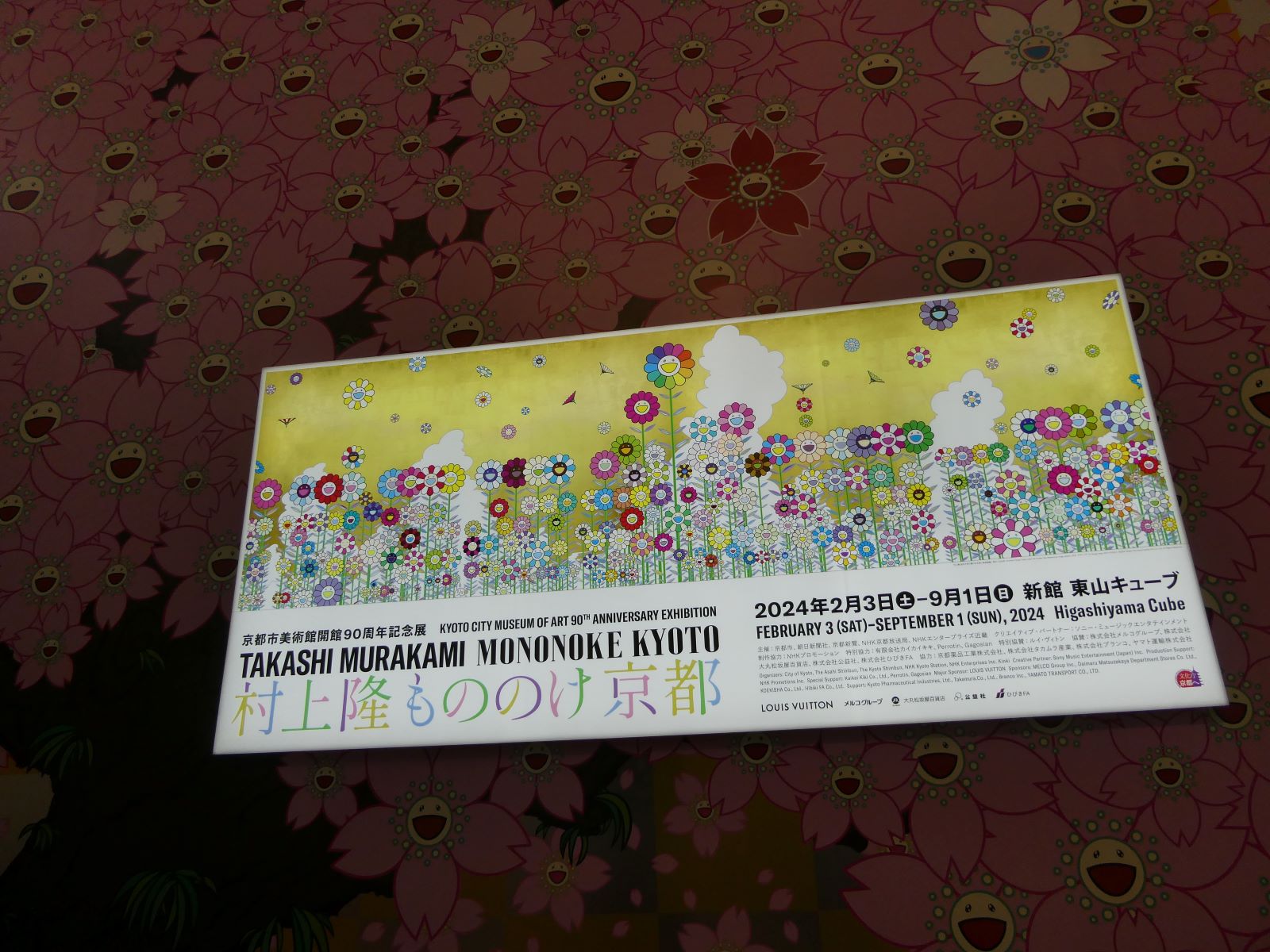 京都市京セラ美術館での『村上隆もののけ展』を見に行きました。気になっていた現代美術家ですが、ぼくが見る初めての村上隆さんの展覧会です。もともと村上隆さんは東京芸術大学のころは日本画を専攻していて、江戸時代の尾形光琳らの琳派の画家を尊敬していることなどを初めて知りました。なんと、ぼくと同じ学年であるらしい。敗戦国日本のある種のゆがんだコンプレックスと、そこから出発し、跳躍する日本への愛を村上さんは描いているらしい。なるほどと思いました。以外にもとても面白かった。大江健三郎いうところの「Late Style(晩年様式)」の老年を歩いていく村上隆さんのこれからの作品、表現にぼくは興味津々であります。