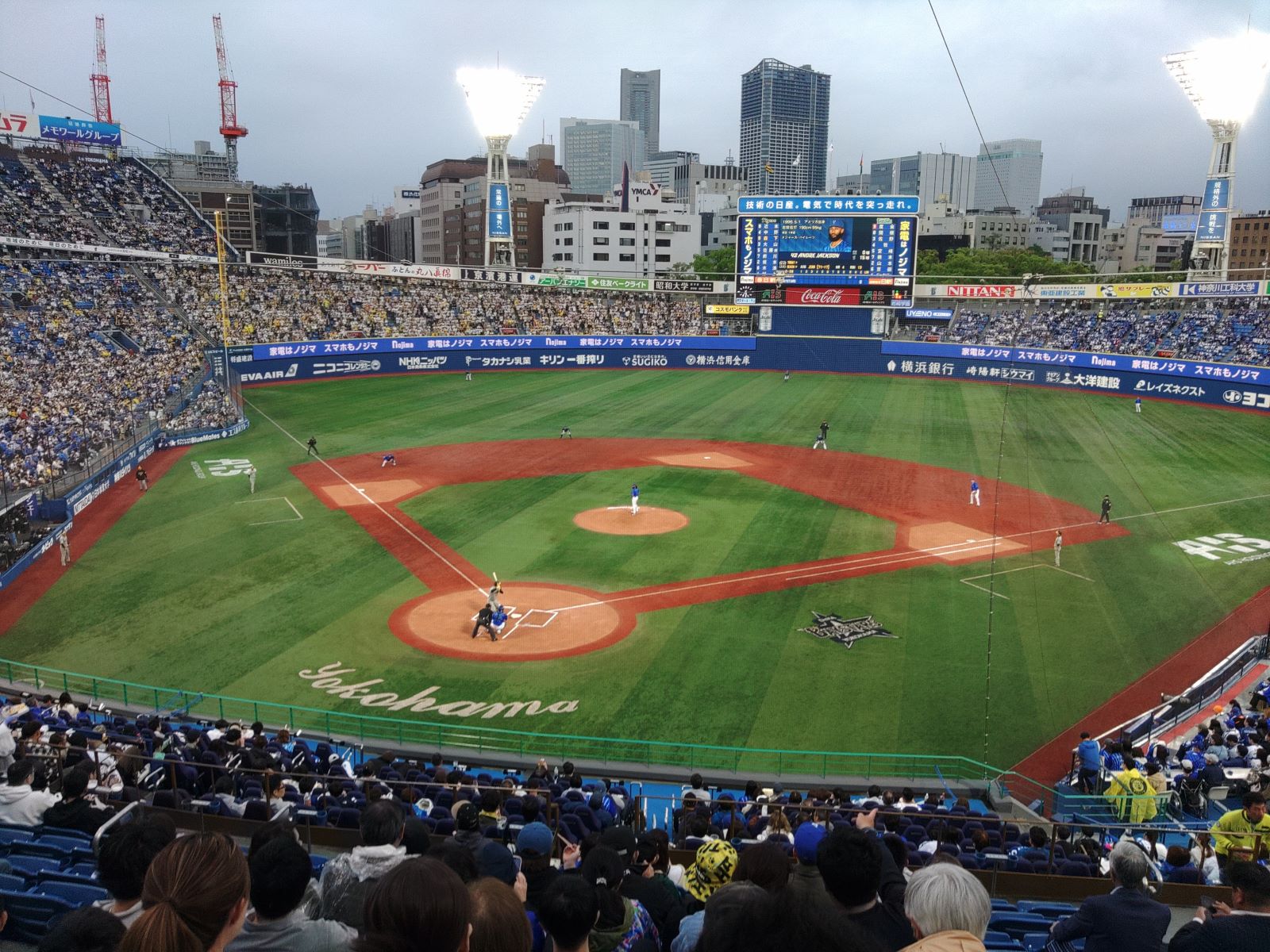 夕方に横浜スタジアムに移動し、フレーフレー・ベイスターズ。今日の阪神との試合は延長12回での1対1の引き分けとなりました。塁には走者を進めるが、決め手のヒットが出ません。ライトの度会選手はスランプか、打てなくなってしまった。プロは厳しいのう。投手陣はかなりよかった。首位の阪神とのゲーム差は2ゲームの5位のベイスターズで、ペナントレースはダンゴムシ状態。まだまだこれからです。