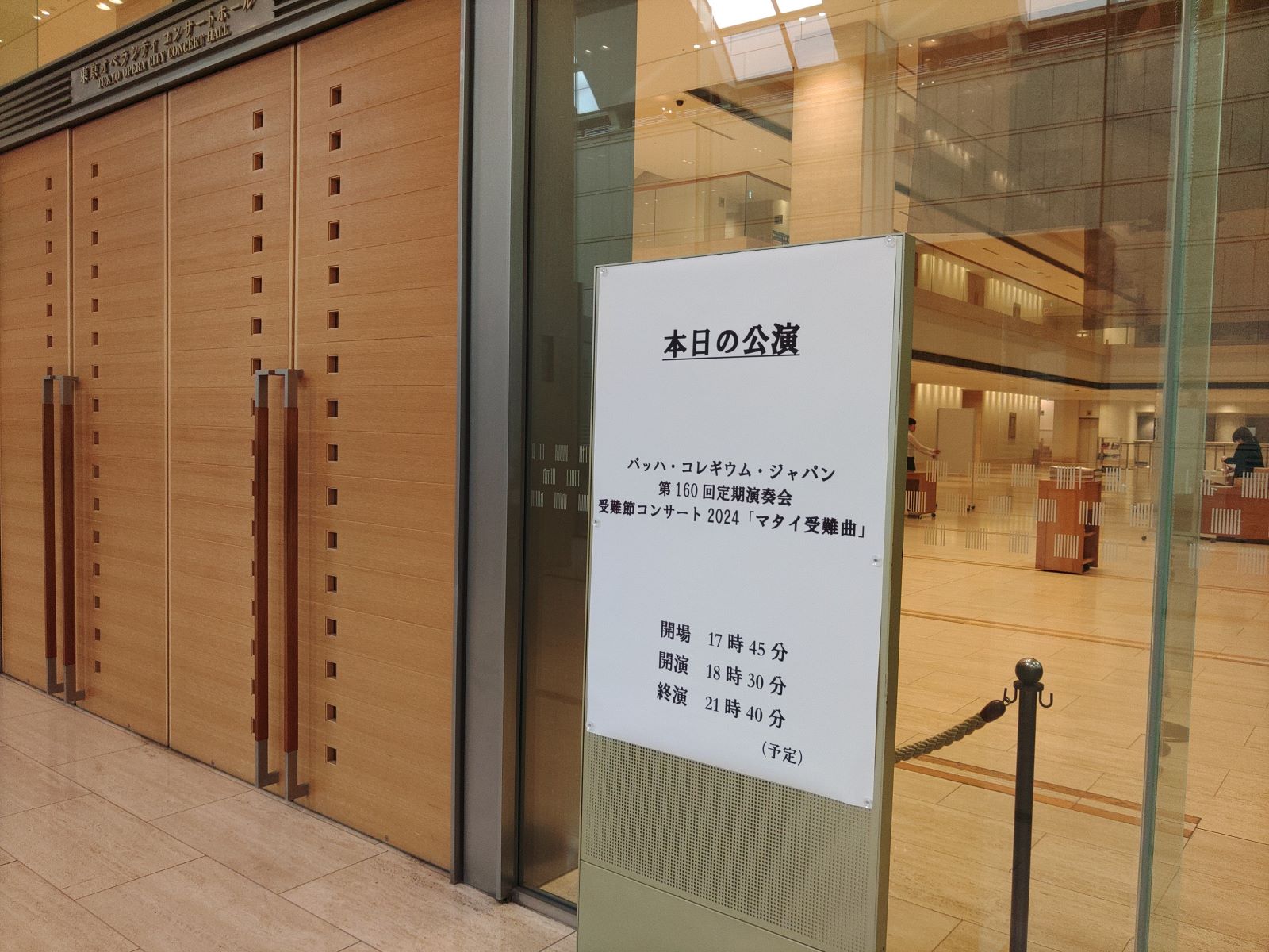 初台の東京オペラシティコンサートホールにバッハの『マタイ受難曲』を聴きに行きました。現代音楽の作曲家、武満徹が新しいプロジェクトを始める時は必ずこの『マタイ受難曲』のピアノ版を全編、弾いていたということを知り、いつか生演奏の『マタイ受難曲』を聴いてみたいと思っていたのが叶ったのです。