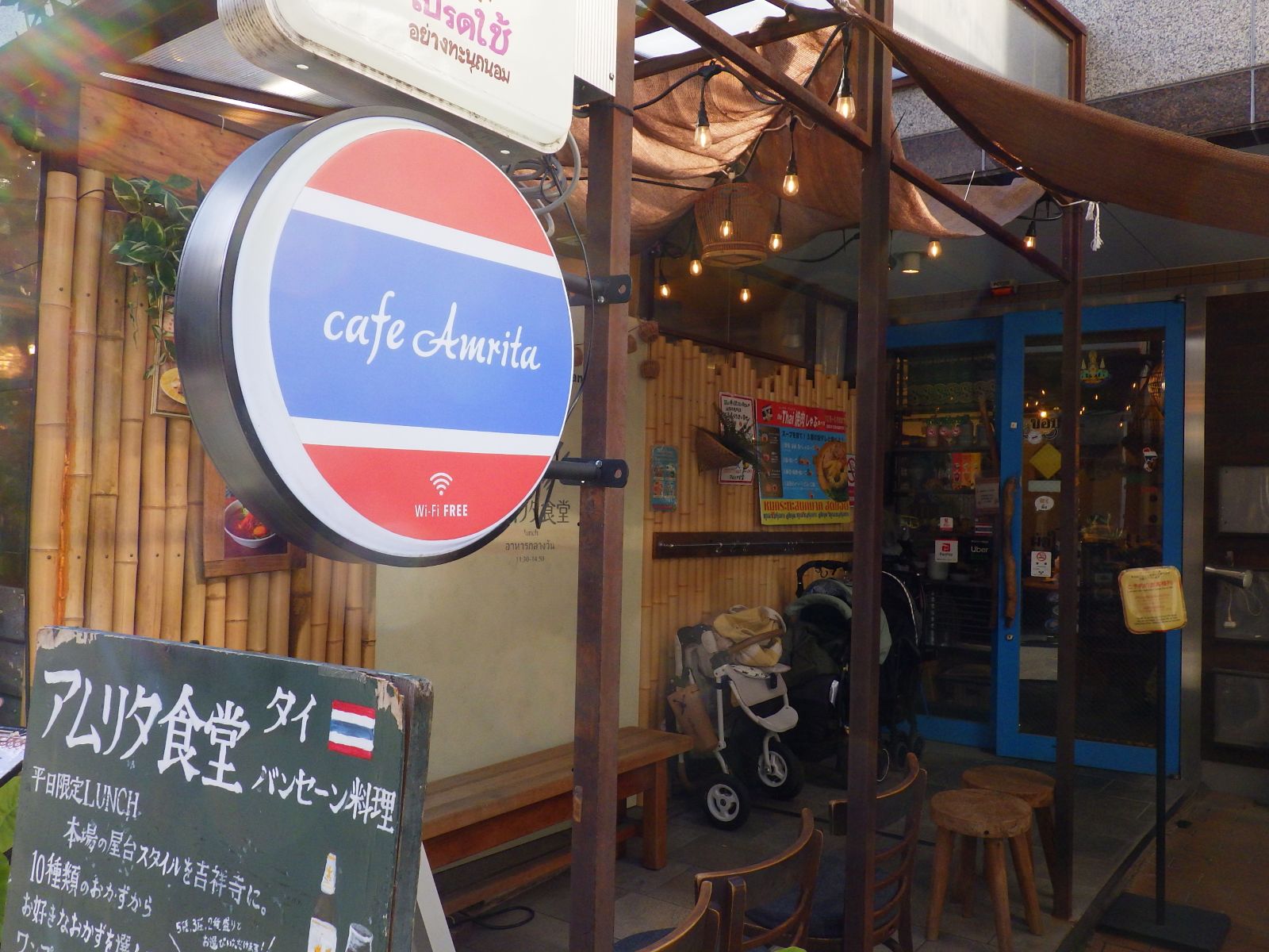昼はアムリタ食堂でタイ料理を美味しくいただきました。本もののタイ屋台料理の人気店にハイソなマダムが集っているようです。