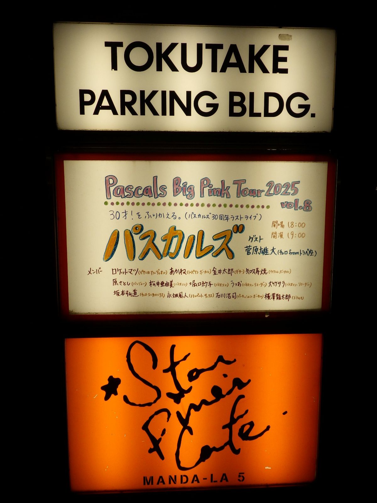 夜はスターパインズカフェでパスカルズのライブ。みんなを楽しくさせ、喜ばせるパスカルズの音楽は絶対に正しい。