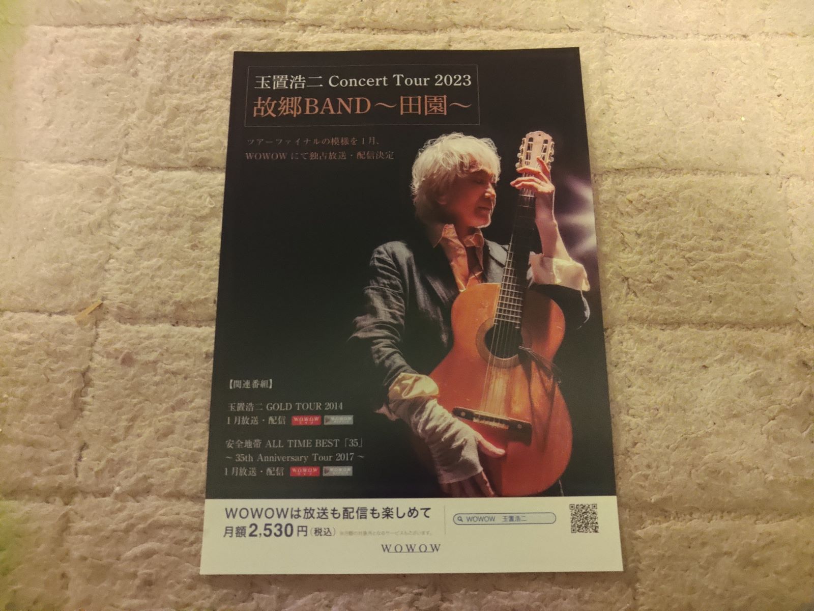 安全地帯というバンドもよく知らないぼくが、友だちに誘われて、有楽町の東京国際フォーラムのホールAに『玉置浩二 Consert Tour 2023 故郷BAND~田園~』を見に行きました。チェロやバイオリン、サックスやトロンボーンを含む九人編成のバンドは重厚でリリカル、時にもの悲しく顔をゆがめて全身全霊で歌う玉置浩二さんの歌は、熱く、説得力に溢れ、素晴らしい。自らのツアーバンドの「故郷BAND」と名付けるそのセンスが凄い。自伝的な佳曲「次男坊」の赤裸々さに驚きます。アンコールでのあっと驚く展開に、今の世界へのメッセージもどこか感じました。こんな演奏と歌を聴いて、歌の善き力ということを思わずにはおれません、そんなコンサートでした。