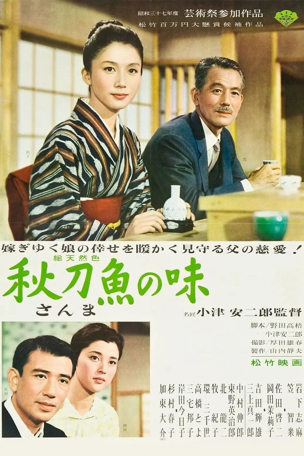 『秋日和』での岡田茉莉子さんが物語を作る重要な役を演じています。『晩春』、『麦秋』、『東京物語』での名女優、杉村春子のような役です。ある時の宴席で岡田茉莉子さんは、小津安二郎に監督にとっての四番バッターは誰ですかと聞いたそうです。小津は杉村春子だよと答えたそうですが、照れ屋の小津安二郎は岡田さんに杉村春子を見習いなさいと伝えたかったのかもしれません。